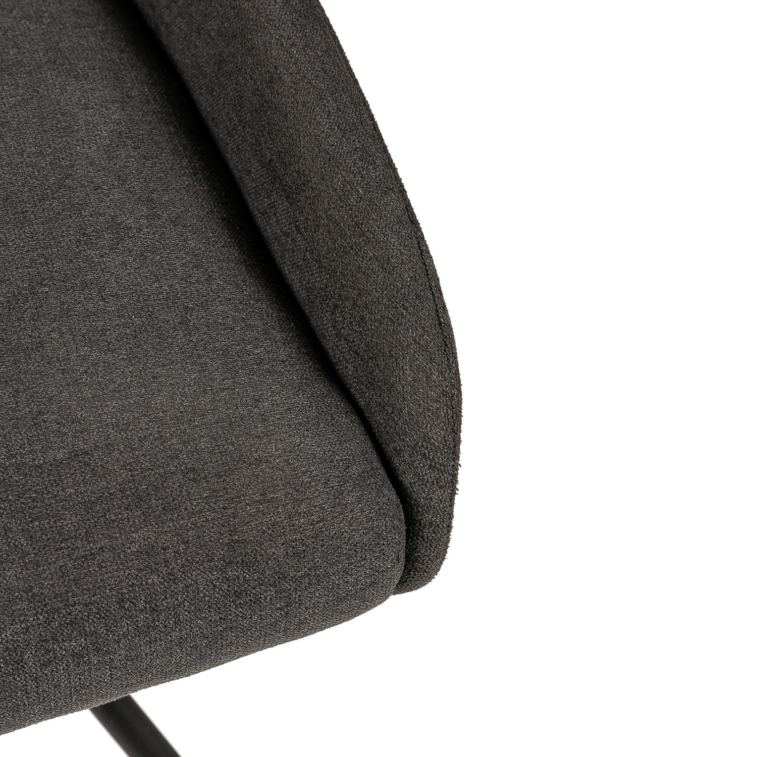 Está formada por cuatro patas de metal en color negro, encargadas de proporcionar una gran estabilidad, y a su vez, sostienen un asiento y un respaldo de pieza única, tapizado en tejido acabado en gris oscuro.