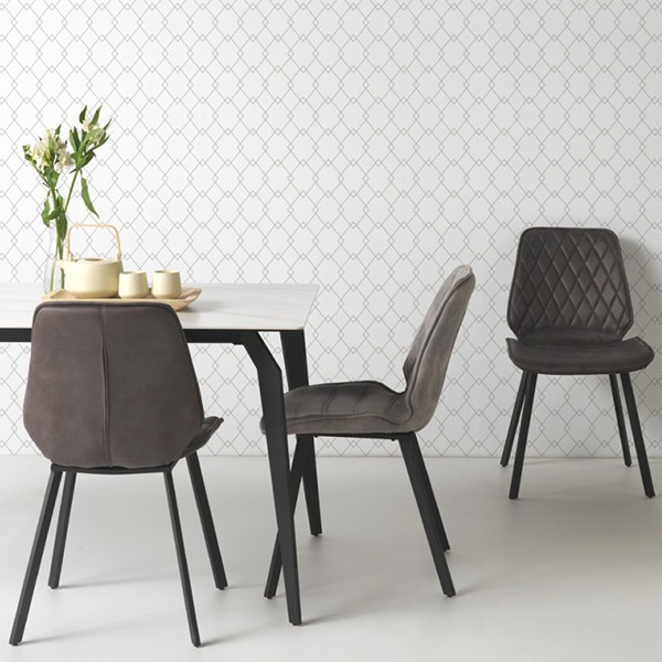 La decorativa silla ROB presentada con sus originales pespuntes en forma de rombo no te dejará indiferente. Su diseño desahogado y agradable hace de esta silla única.