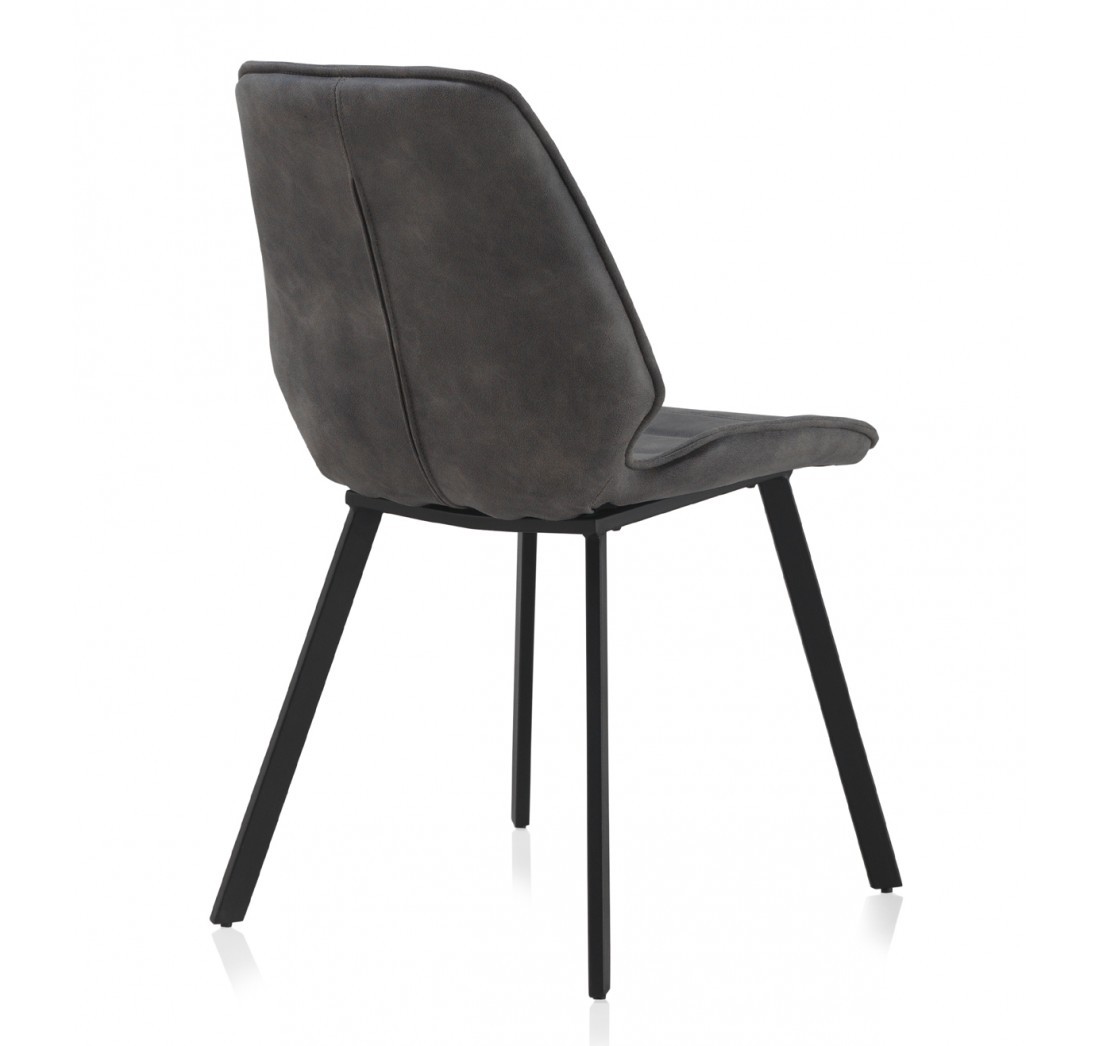 Confeccionada con un tapizado 100% poliéster en asiento y respaldo de color gris oscuro acolchado, que contrasta con sus patas metálicas que le aportan un estilo más moderno.