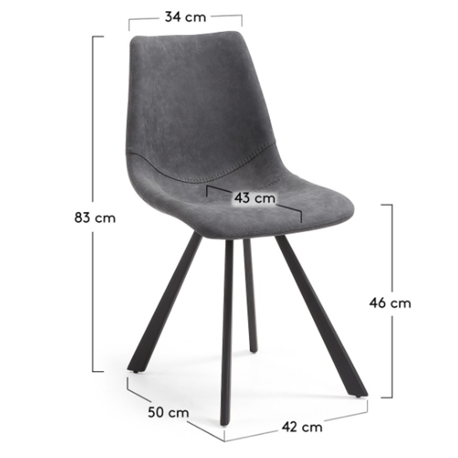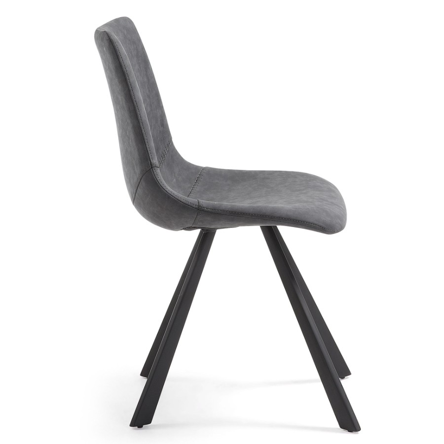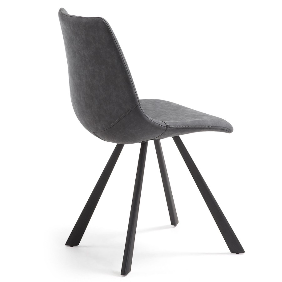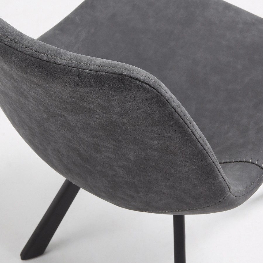 Silla de comedor en polipiel gris oscuro y metal negro
