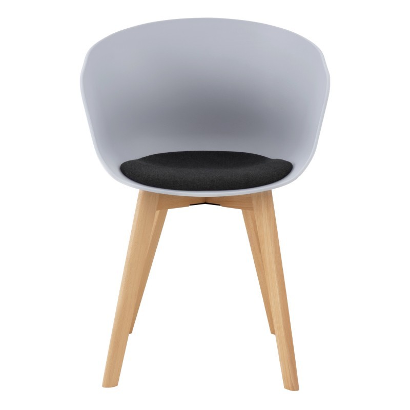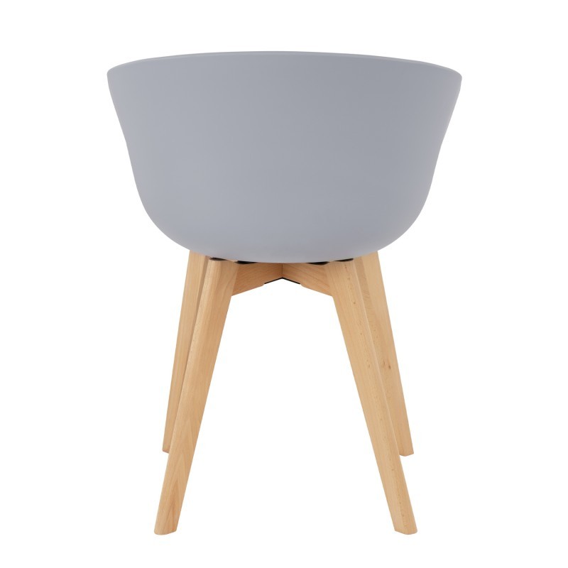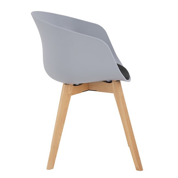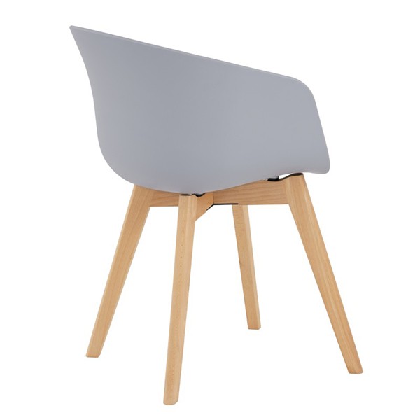Una opción para todas estas estancias es la silla de comedor SUPER BISC FLAK, un modelo diseñado en polipropileno en color gris para su asiento, mientras que como estructura en posición cruzada, cuatro patas en madera de haya en color natural. Cabe destacar el diseño del respaldo, de forma geométrica curvada dando forma a unos reposabrazos para mayor comodidad.