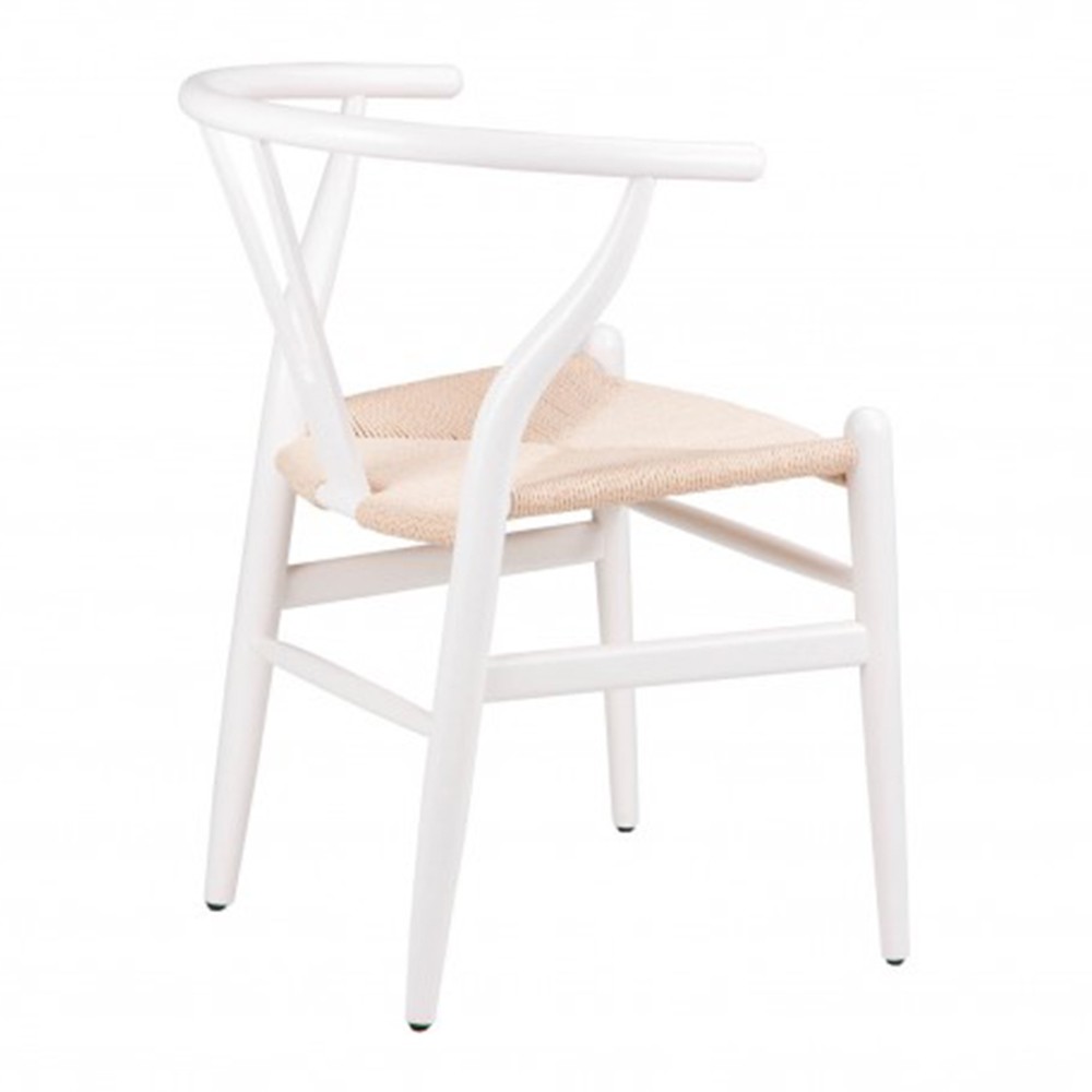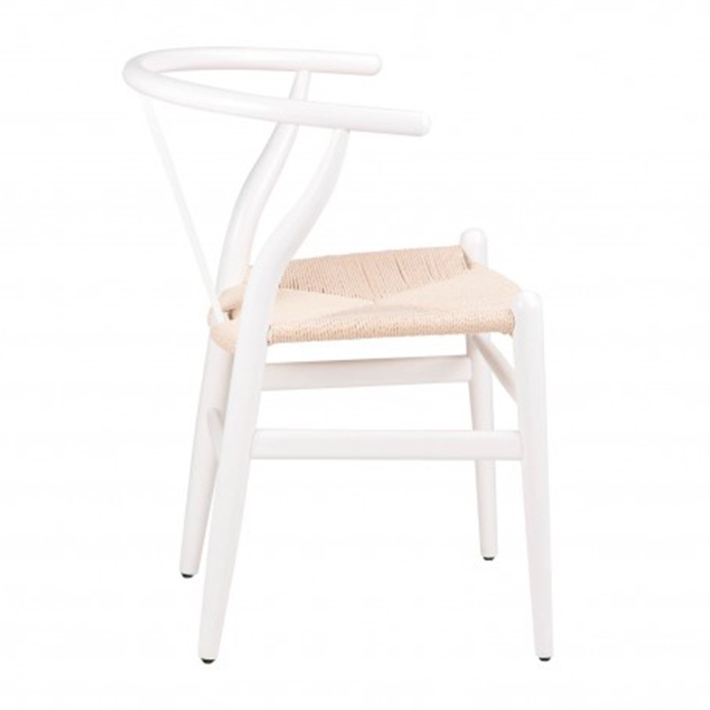 La silla de comedor Haya White WISHBONE CH24 Style es un clásico del mobiliario, y es conocida como la silla "Y" por su respaldo y su asiento artesanal.