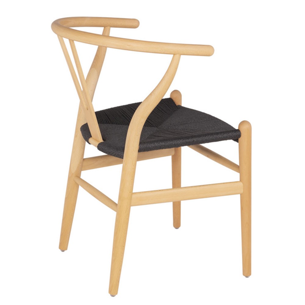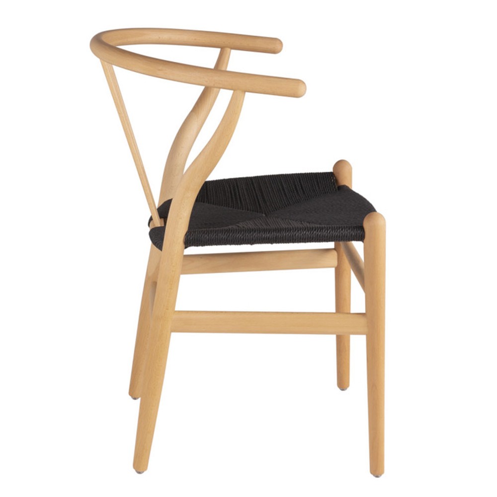 Silla de comedor en madera natural y cuerda negra
