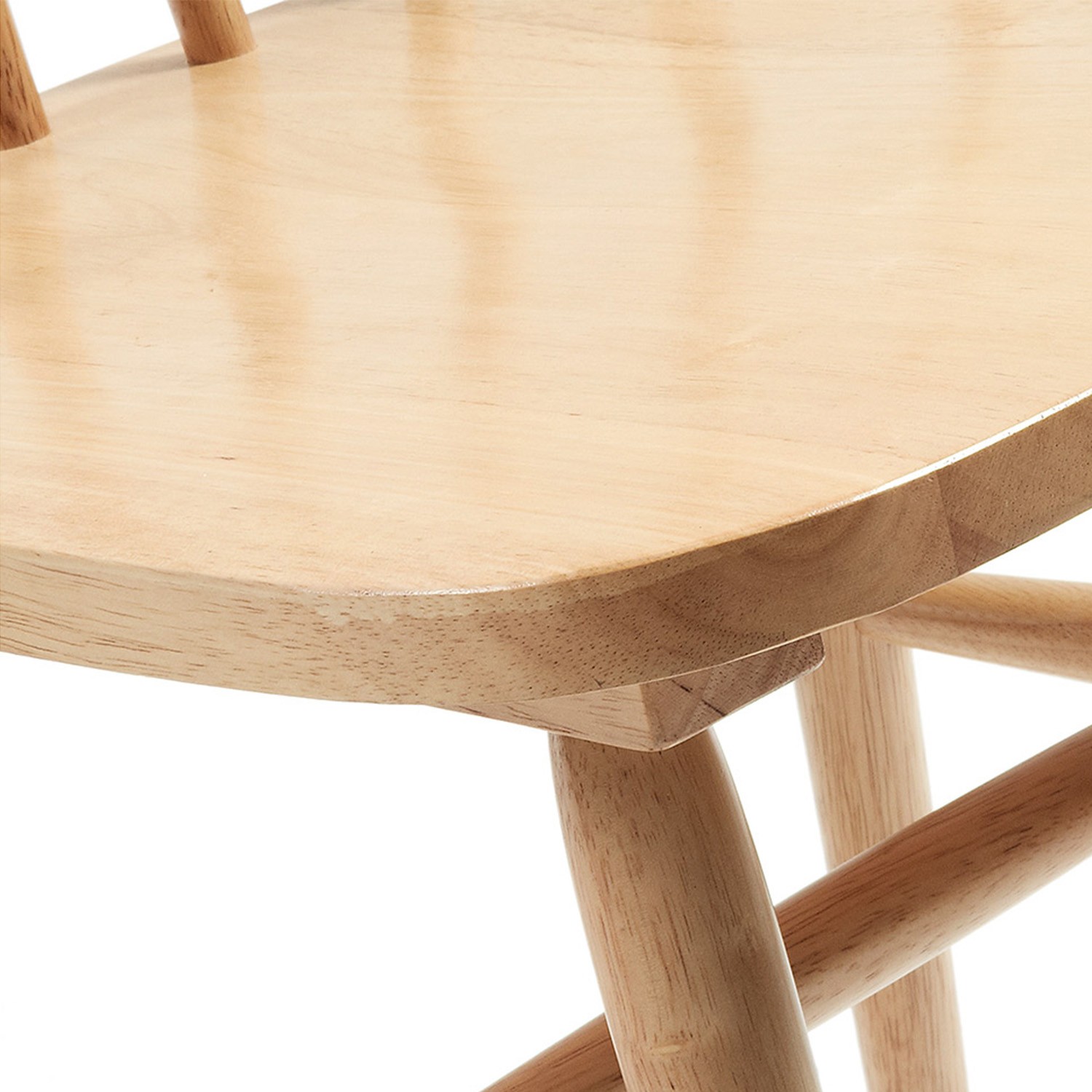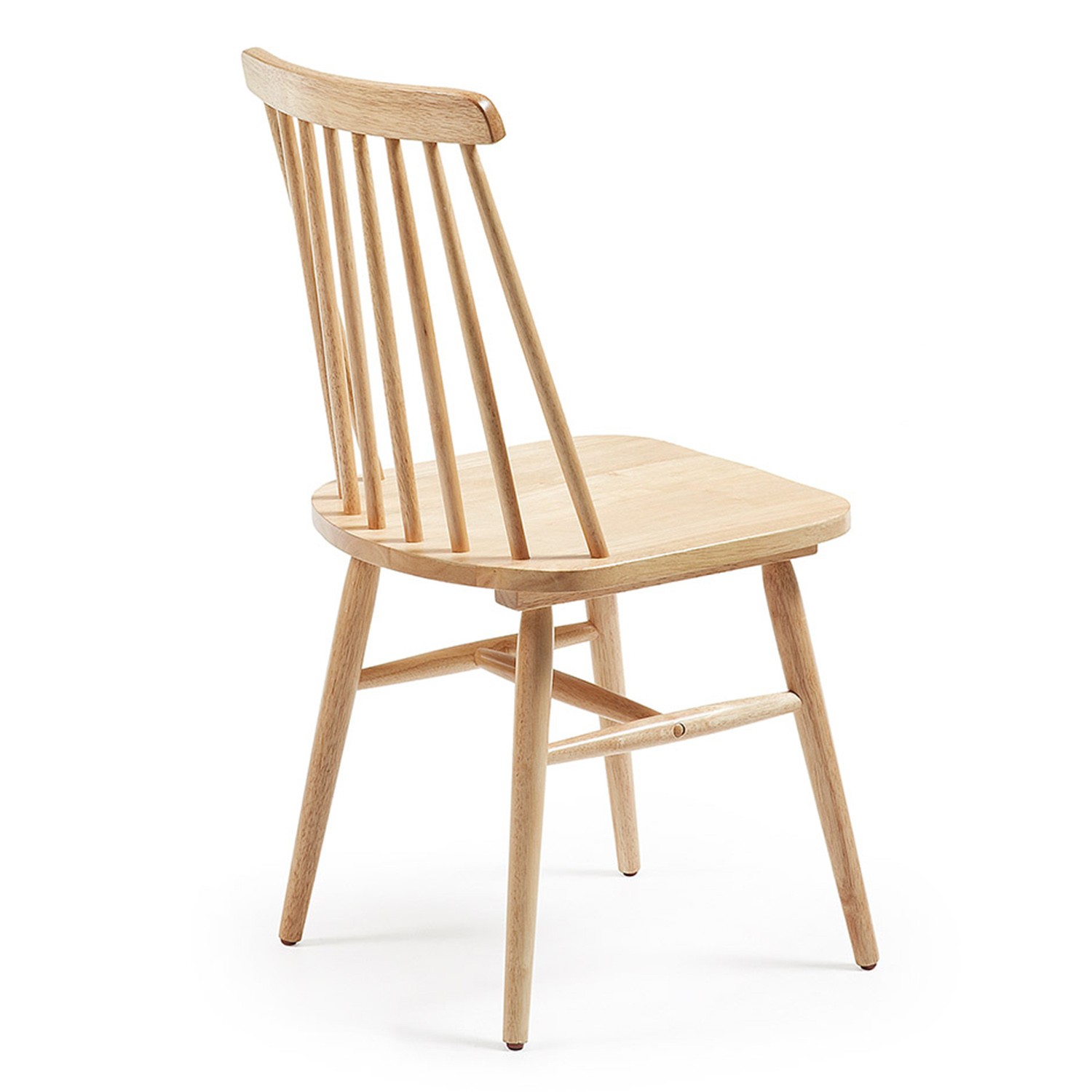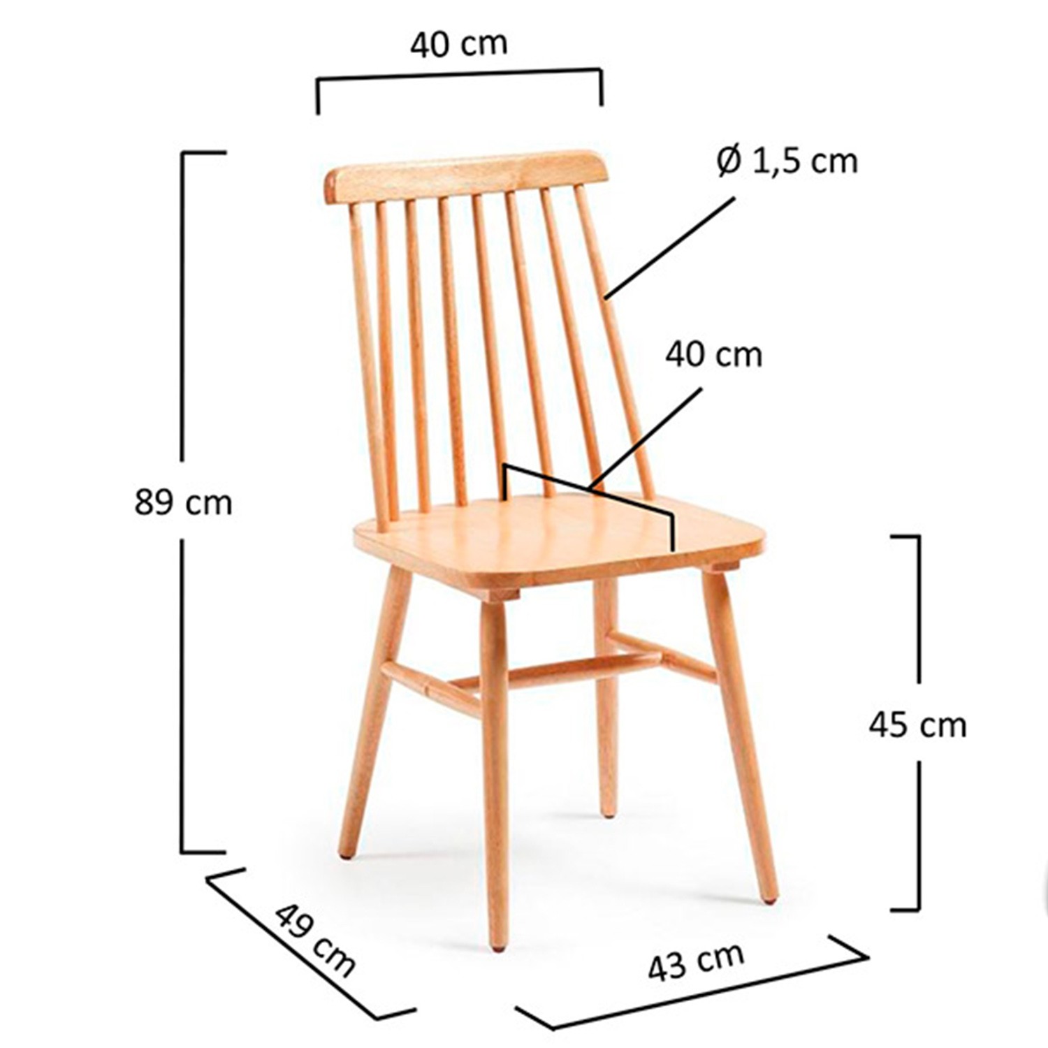 Está fabricada en madera de caucho maciza, manteniendo el color natural tan bello que la madera tiene. Una silla sencilla, económica y con unas líneas estéticas tan bonitas que lucirán maravillosamente en tu comedor, en tu salón, cocina o en el espacio en la que decidas colocarlas.