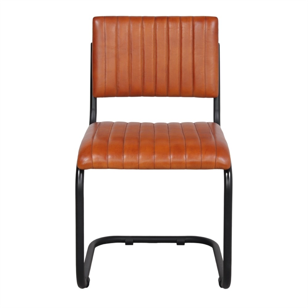 Silla de comedor en piel Marrón y metal Negro