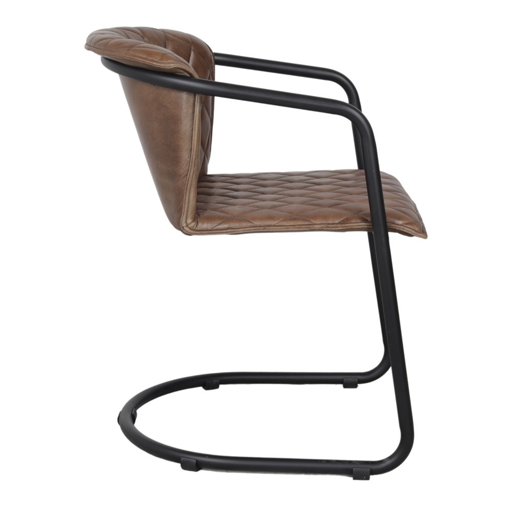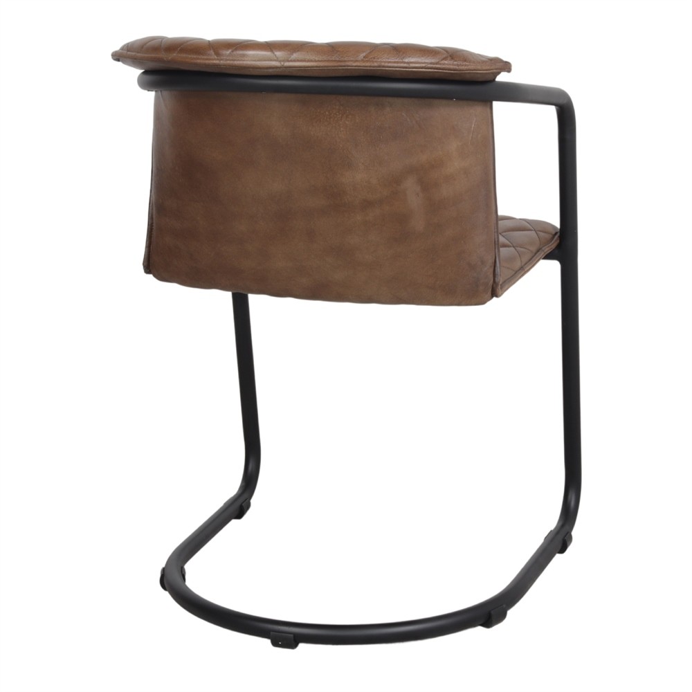 Silla de comedor en piel Marrón y metal Negro
