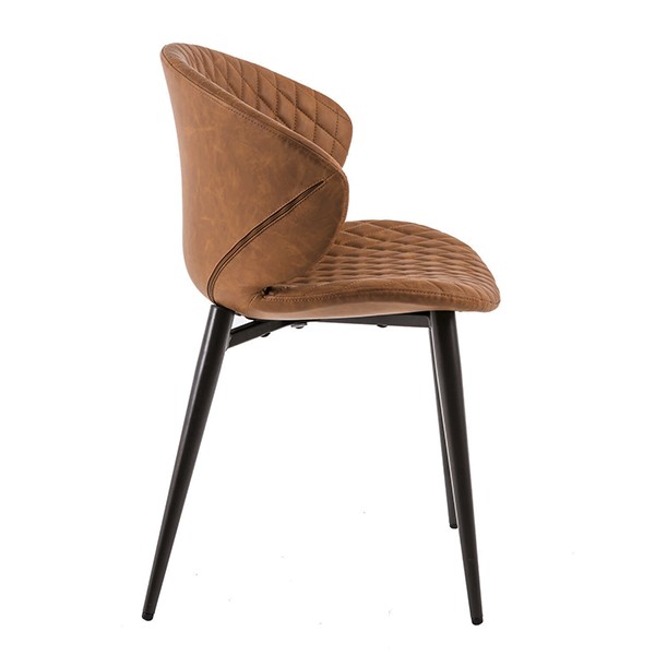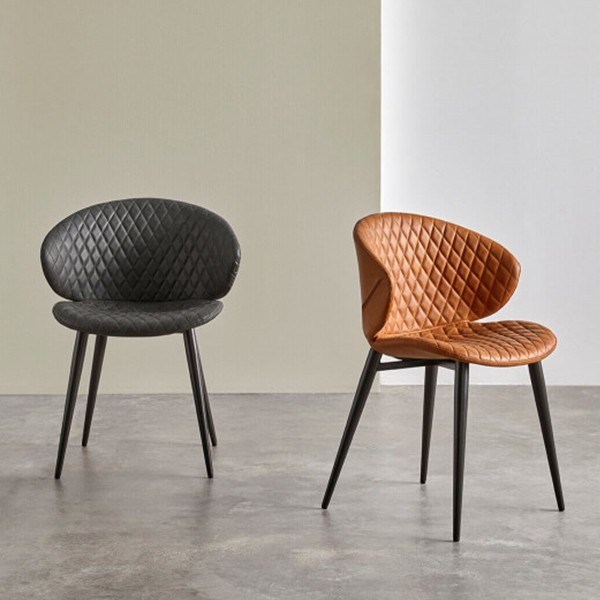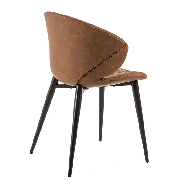 Silla de comedor en polipiel marrón y metal negro.