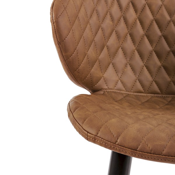 Un respaldo que te recoge la espalda y con el que la sensación de confort es mayor gracias a su forma ligeramente curva y que, como el asiento, está tapizado en polipiel en acabado color marrón. Otro detalle importante es el acolchado tanto del asiento como del respaldo, con pespuntes en formas de rombos.