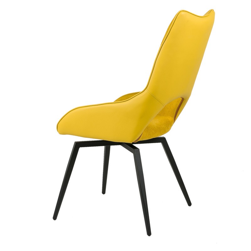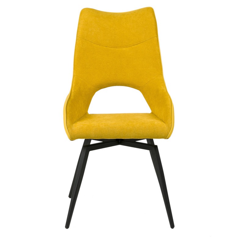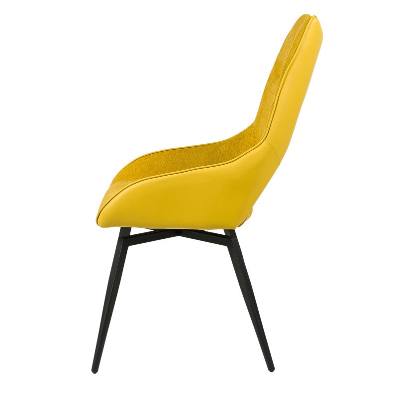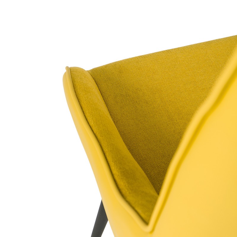 Silla de comedor en tejido y polipiel mostaza, metal negro.