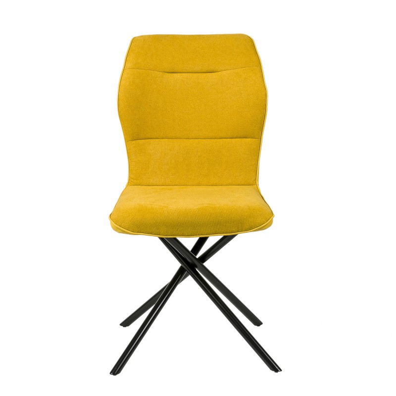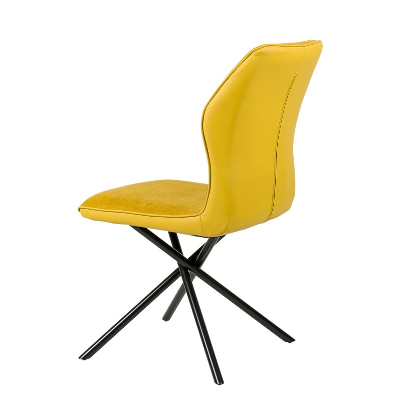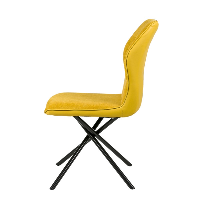 Silla de comedor en tejido y polipiel mostaza, metal negro.