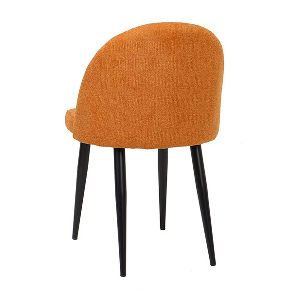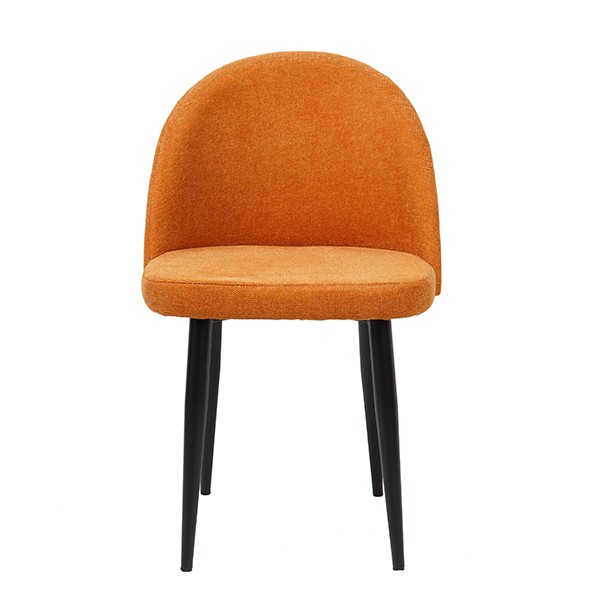 ODETE es una silla con asiento y respaldo tapizado en tejido de color naranja, un color vibrante y cálido; con patas de metal lacadas en color negro, para darle un toque mas casual a su estilo clásico. Cómoda y sencilla.