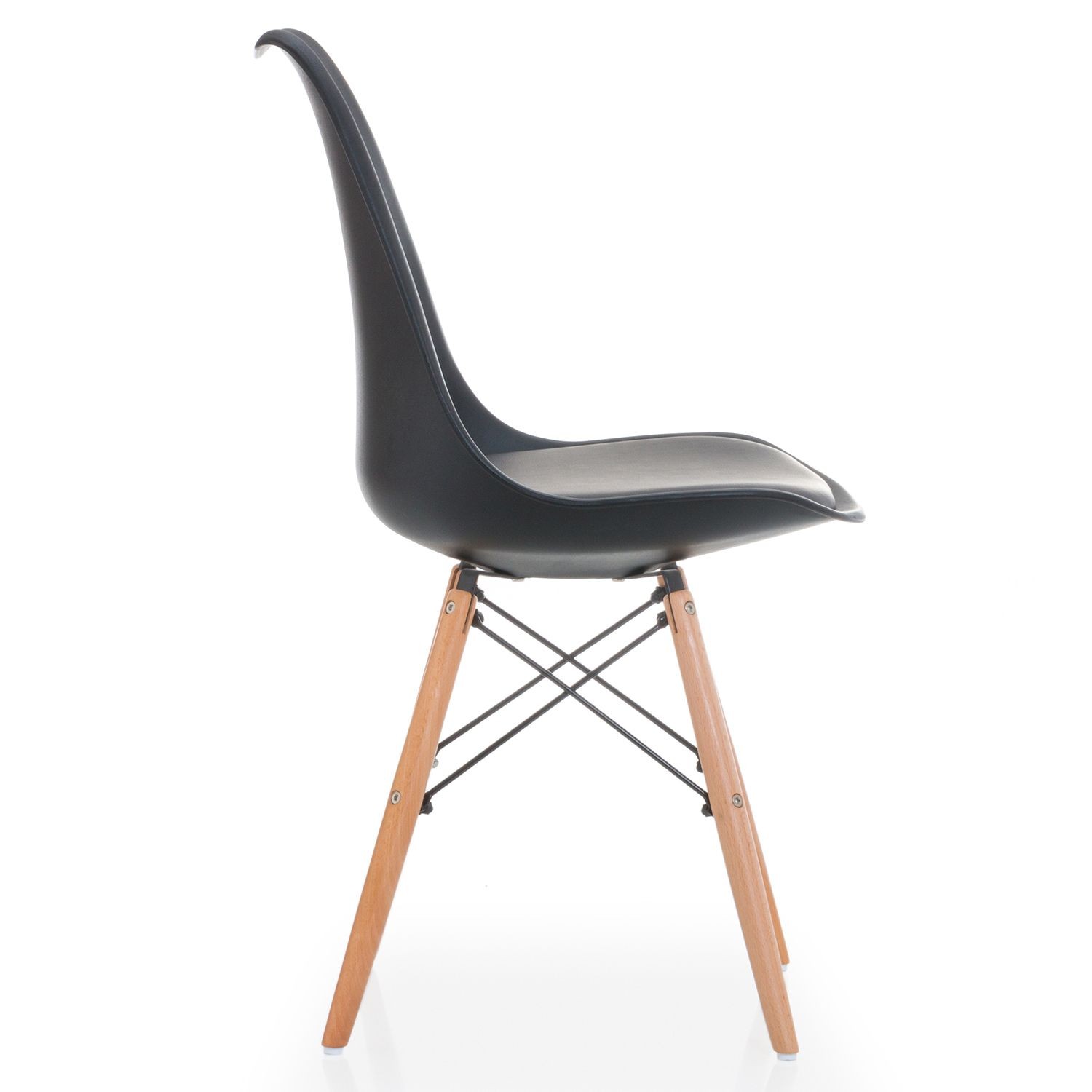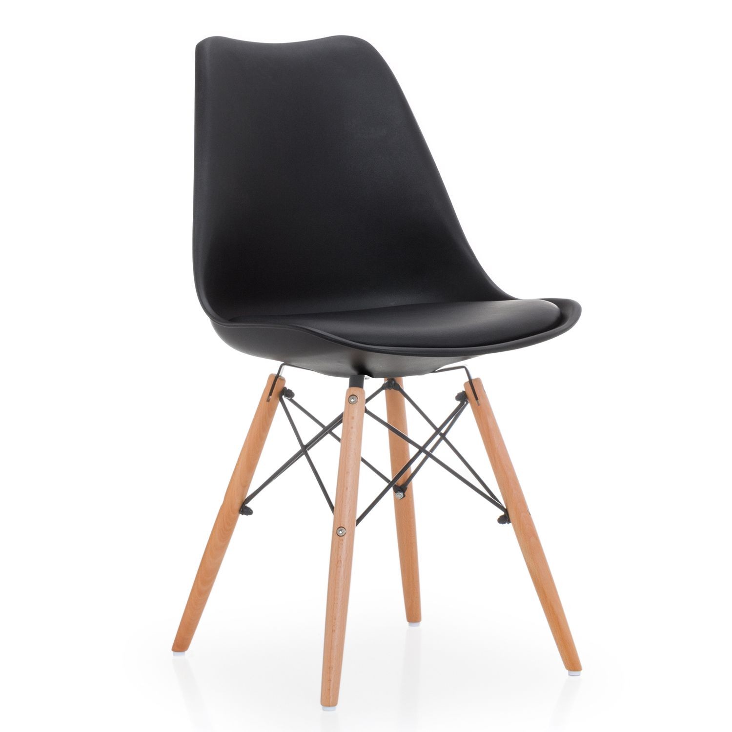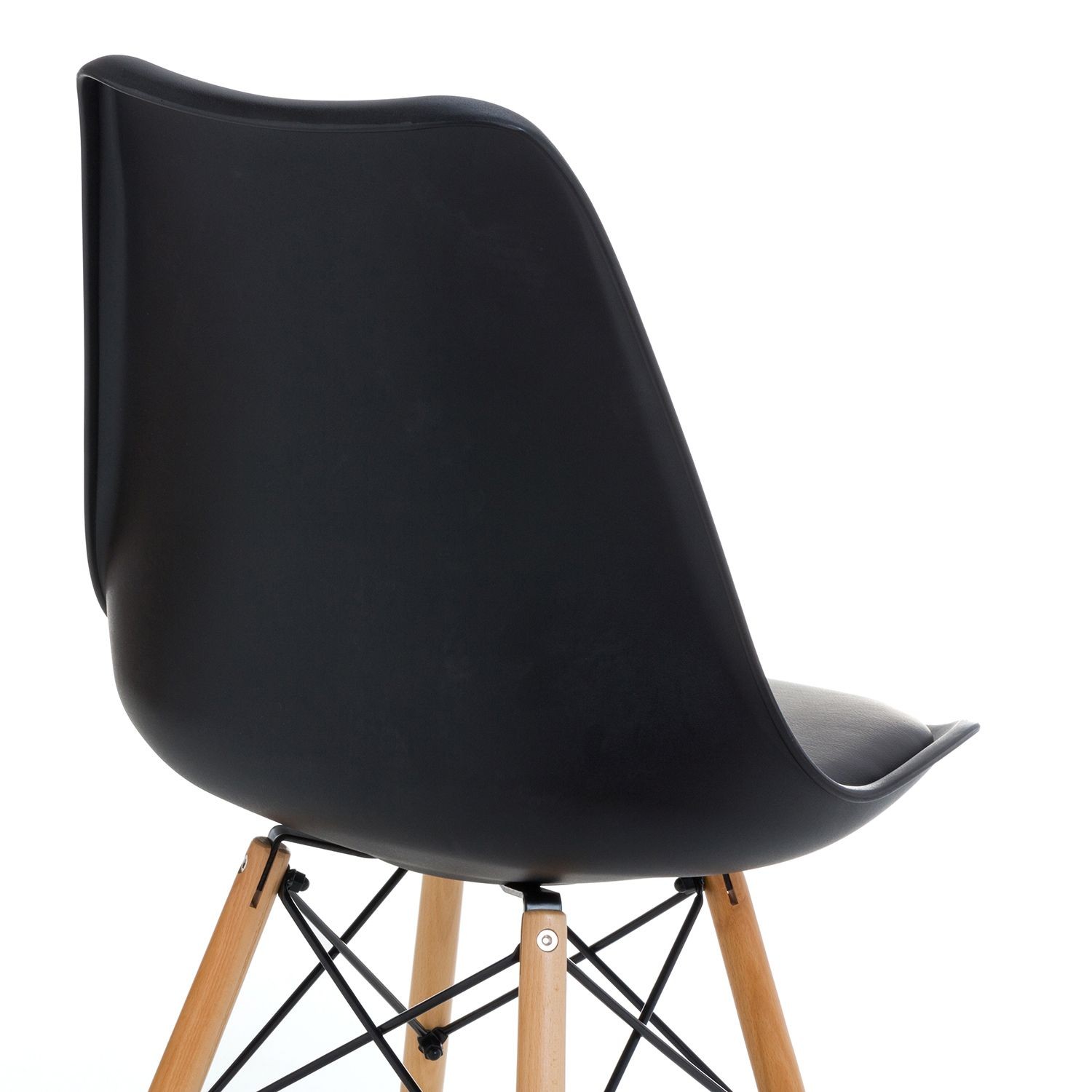 Silla de comedor en plástico y polipiel negro, madera