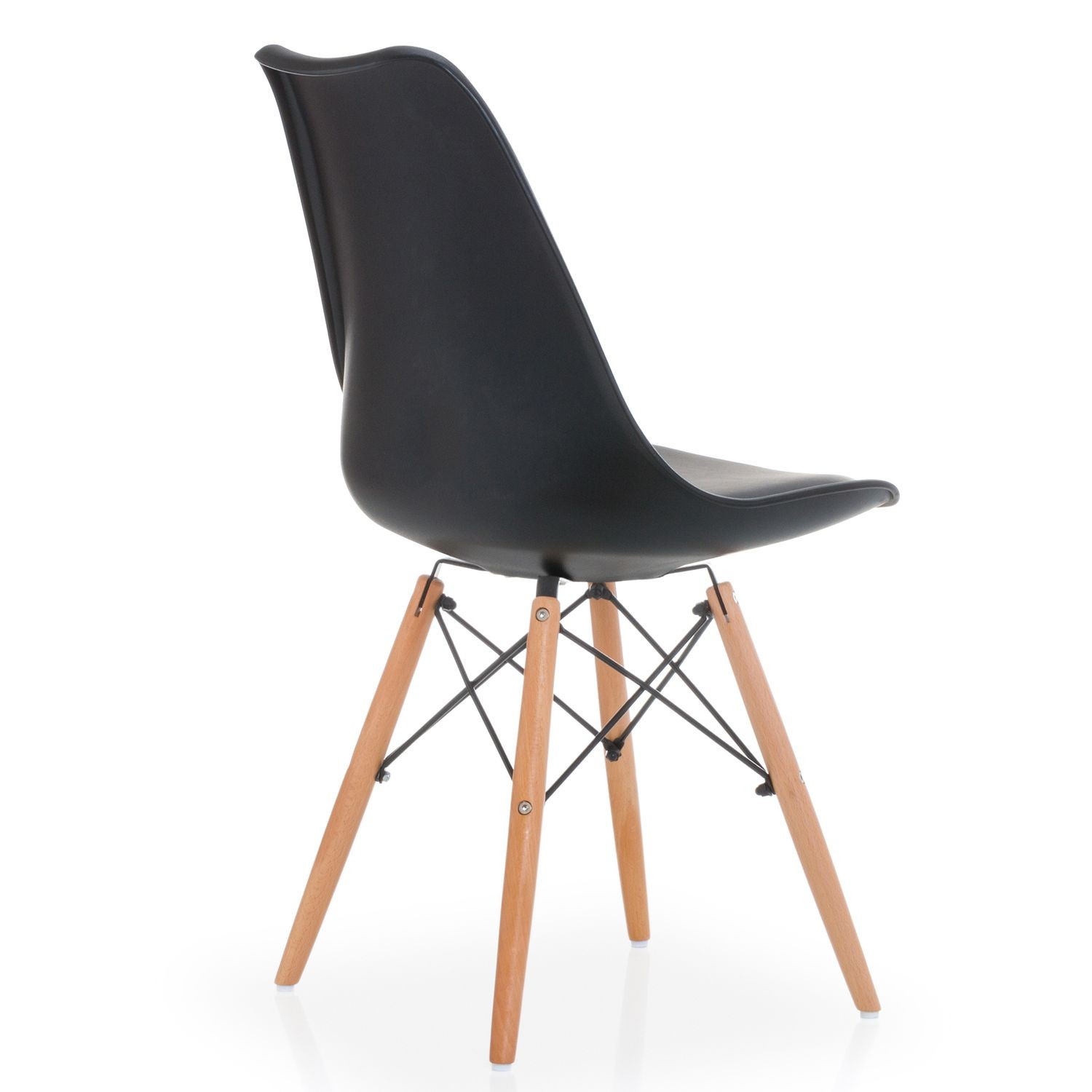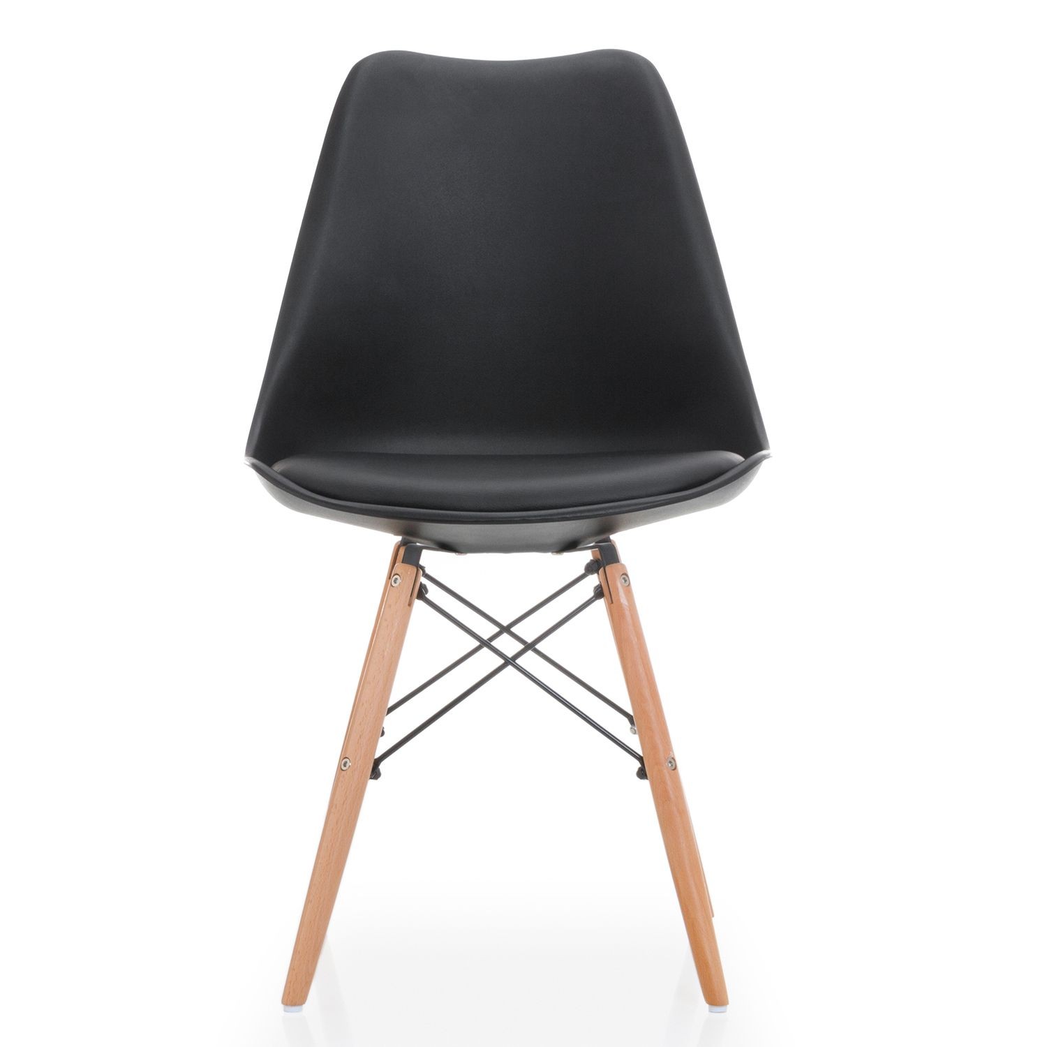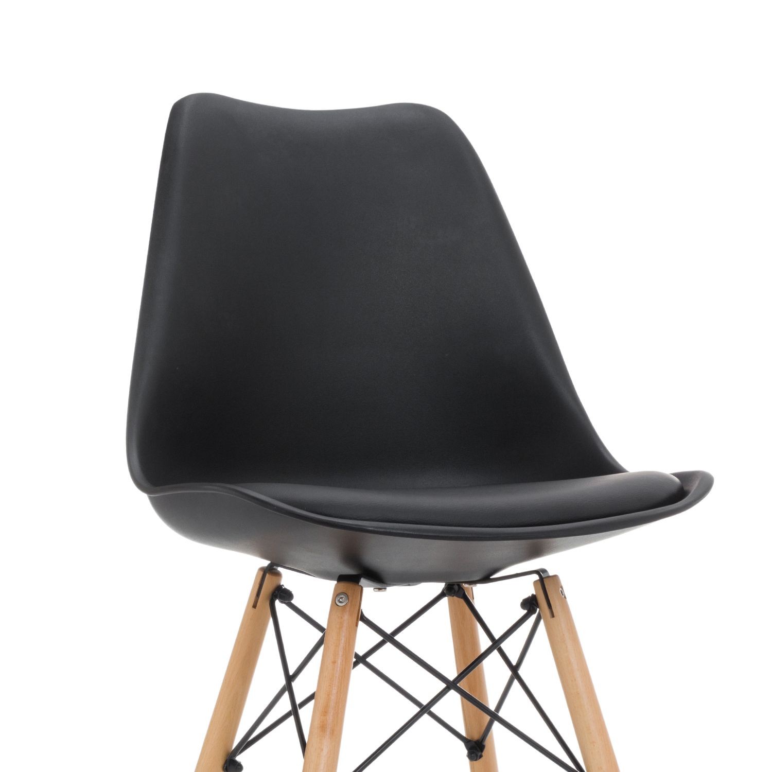 Silla de comedor en plástico y polipiel negro, madera
