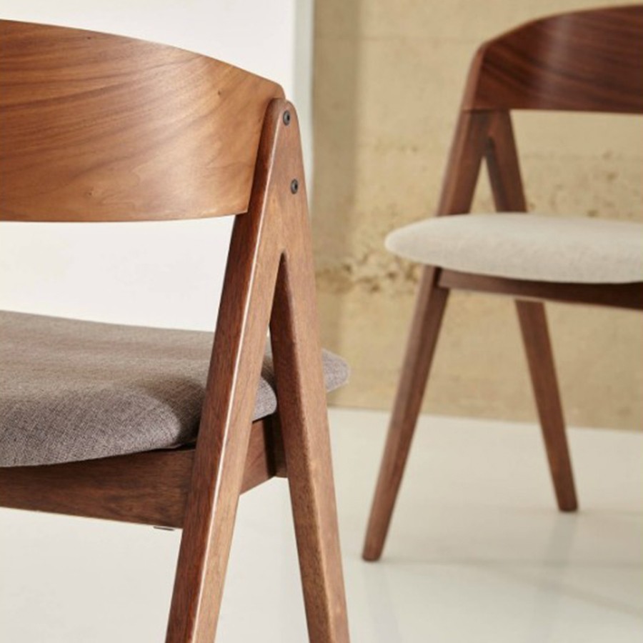 Para el diseño de la estructura y las patas se ha elegido la madera de nogal, puesto que es un material elegante y sobrio. Además, con la finalidad de que tu espalda quede mejor recogida y tu sensación de descanso sea mayor, el respaldo es curvo.