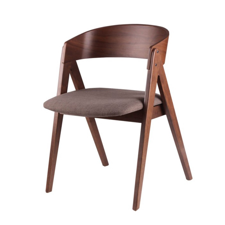 Silla de comedor en madera de nogal y tejido marrón