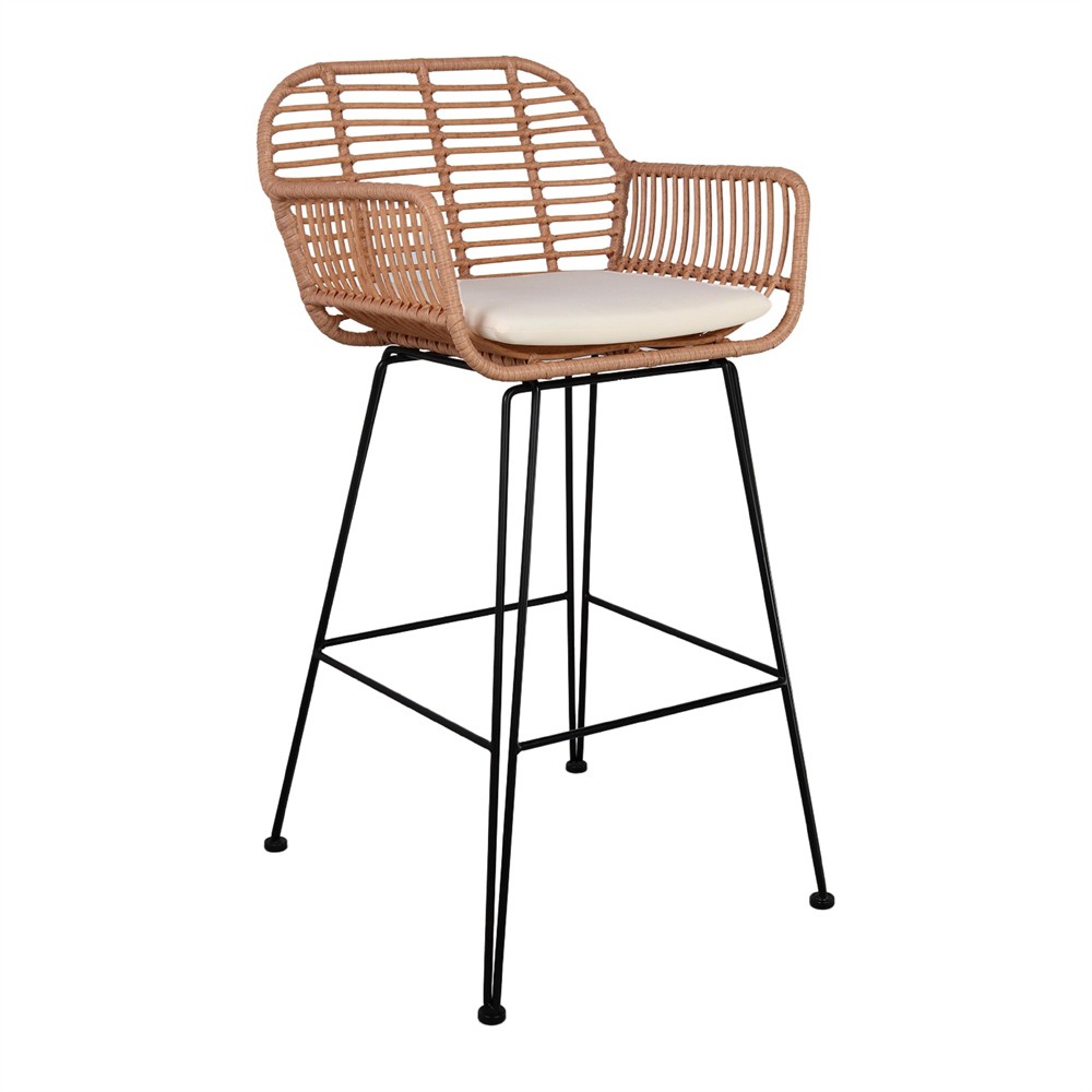 Silla de comedor en madera Negro, rattan y metal