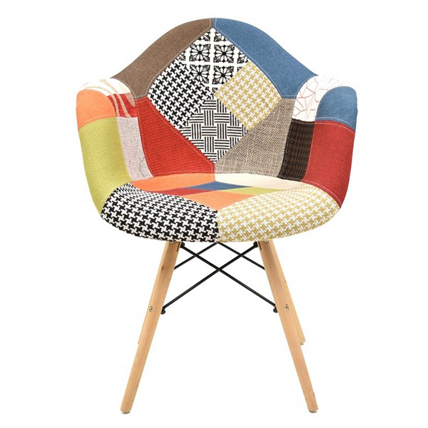 Disfruta de una silla con reposabrazos con el más colorido estampado y el arte del tapizado PATCHWORK.