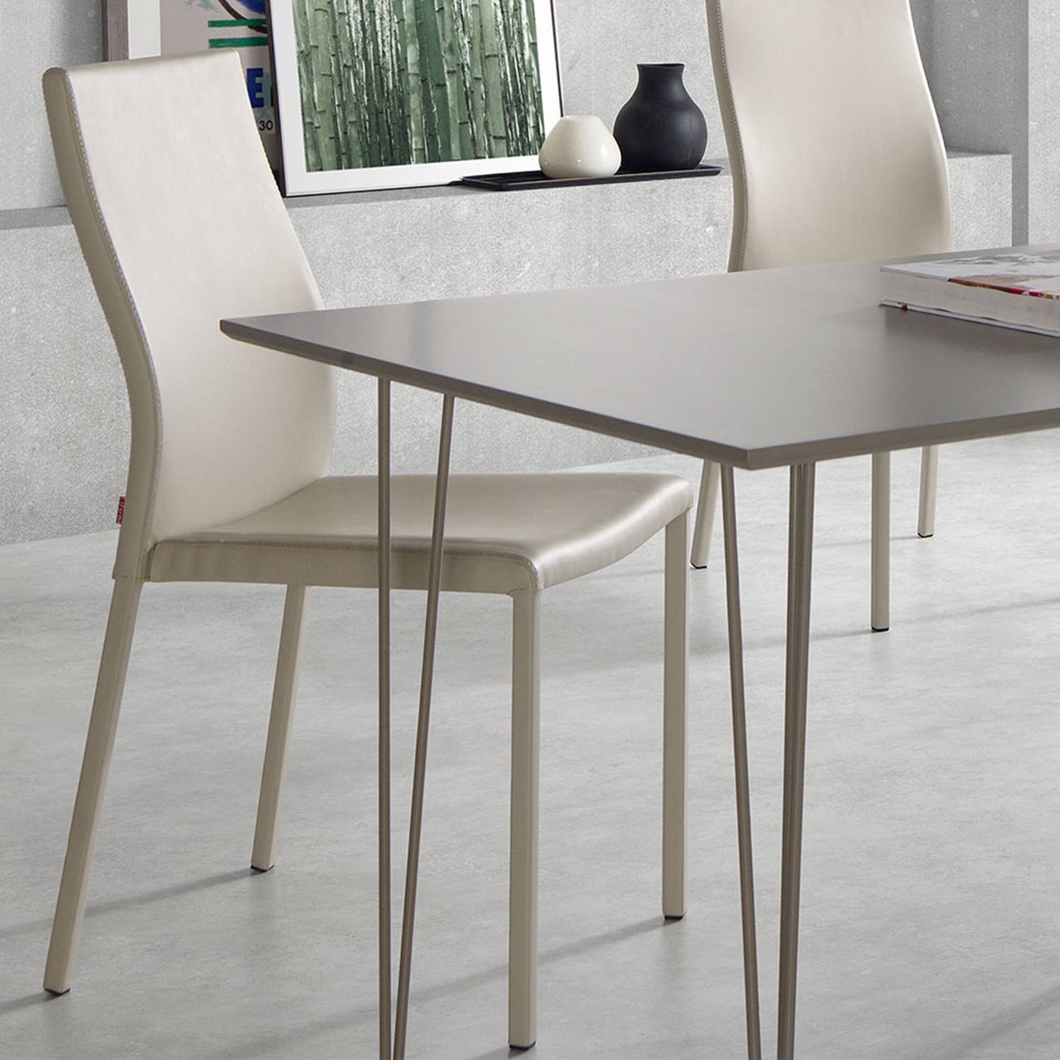 SILLA DE COMEDOR EN POLIPIEL DE COLOR PERLA