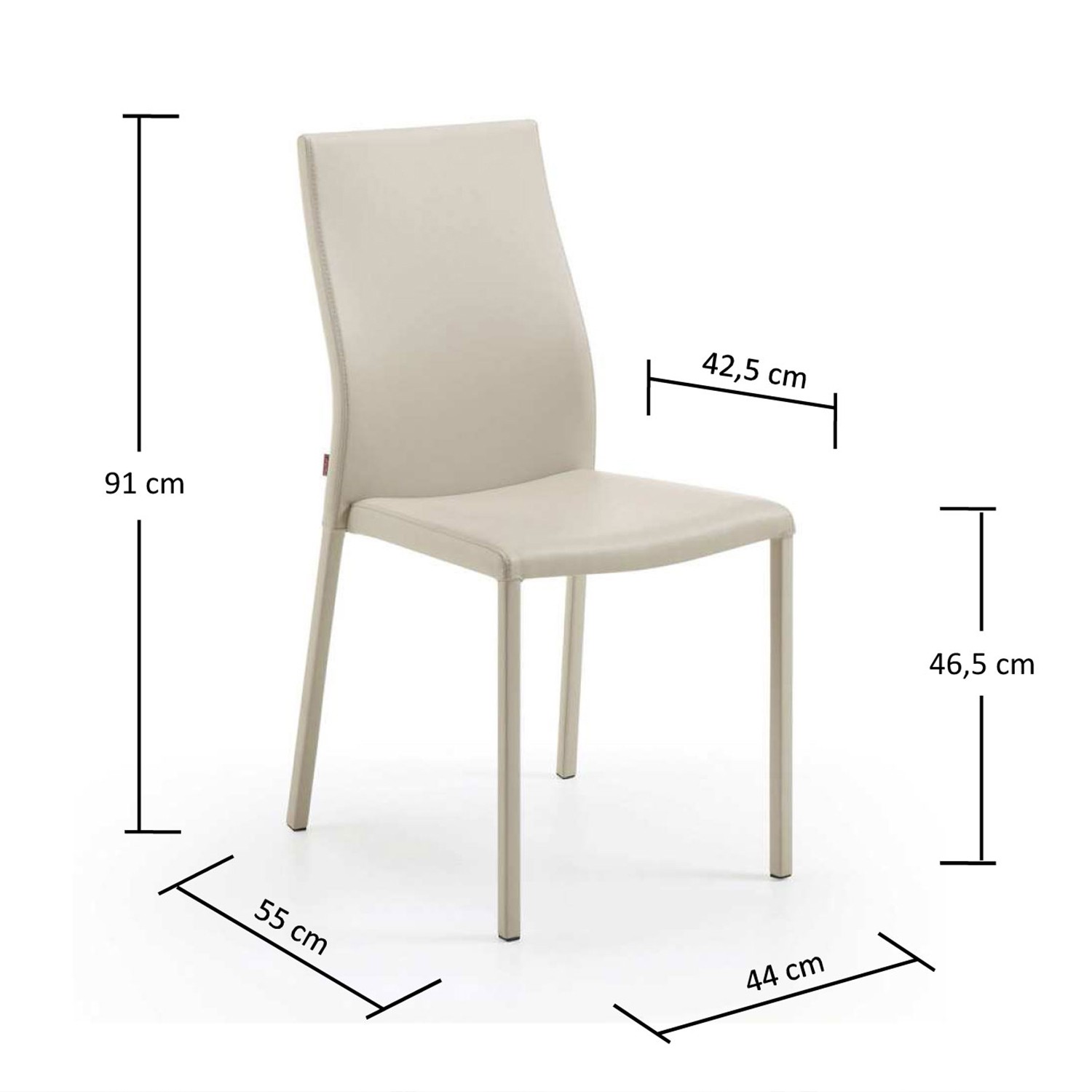 Esta silla tiene un tapizado en piel sintética (PU) en color perla el cual hace de ella una silla ideal para restauración.