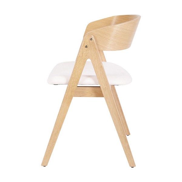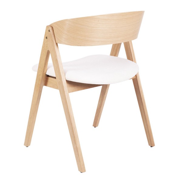 Para ello debes saber que estamos hablando de la silla de comedor JUBEL, con patas y respaldo curvo realizado en madera de roble natural, mientras que el asiento ha sido realizado en tejido acabado en color beige.