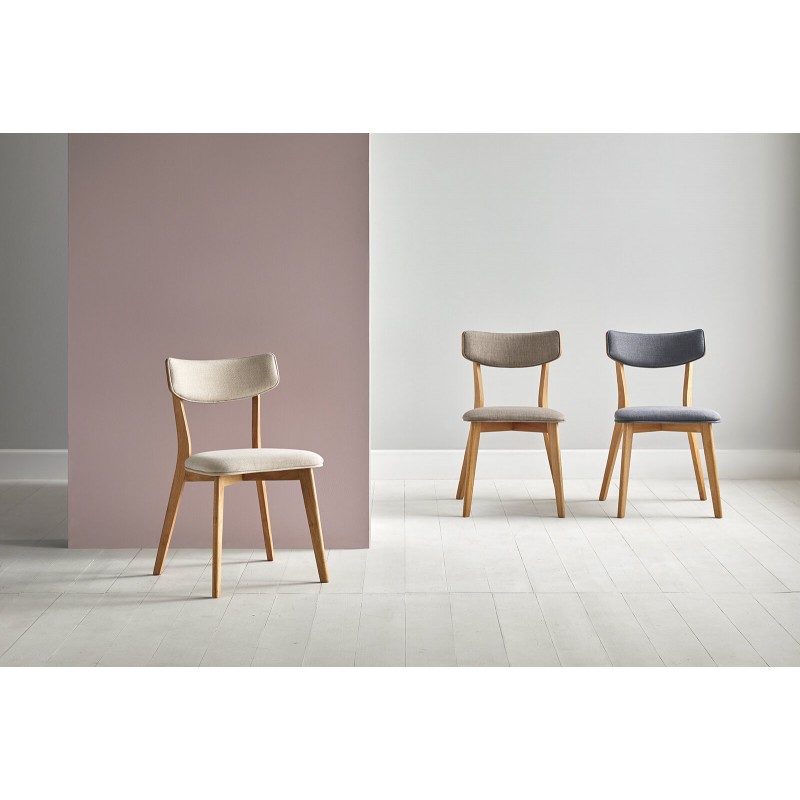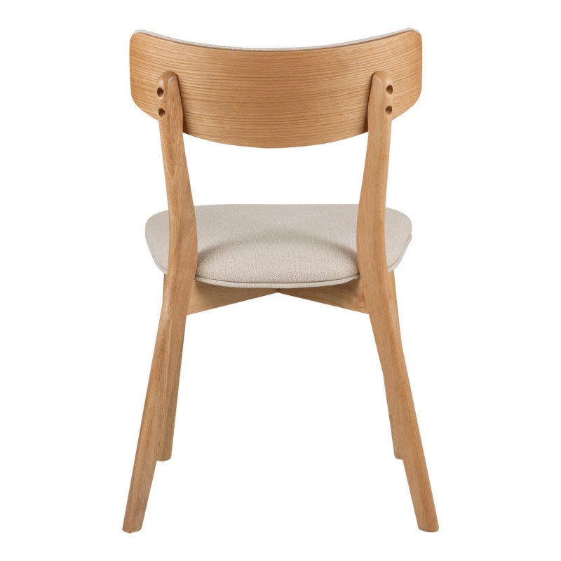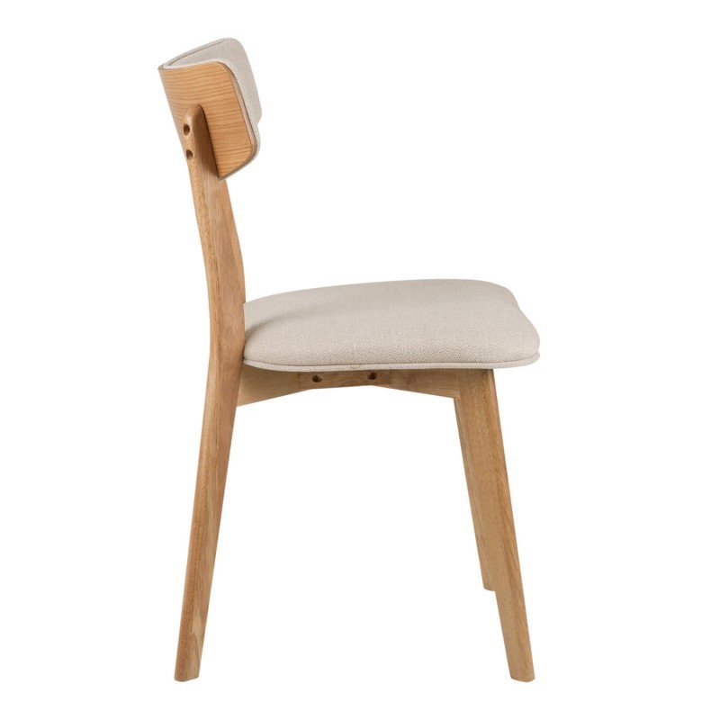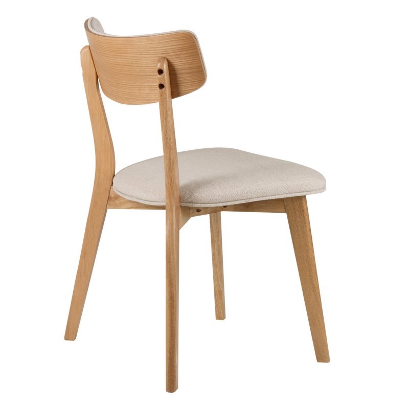 De diseño nórdico, consta de una estructura en madera de hevea acabado en color roble, encargada de sostener un asiento y un respaldo separados, pero ambos tapizados en tejido acabado en color beige.