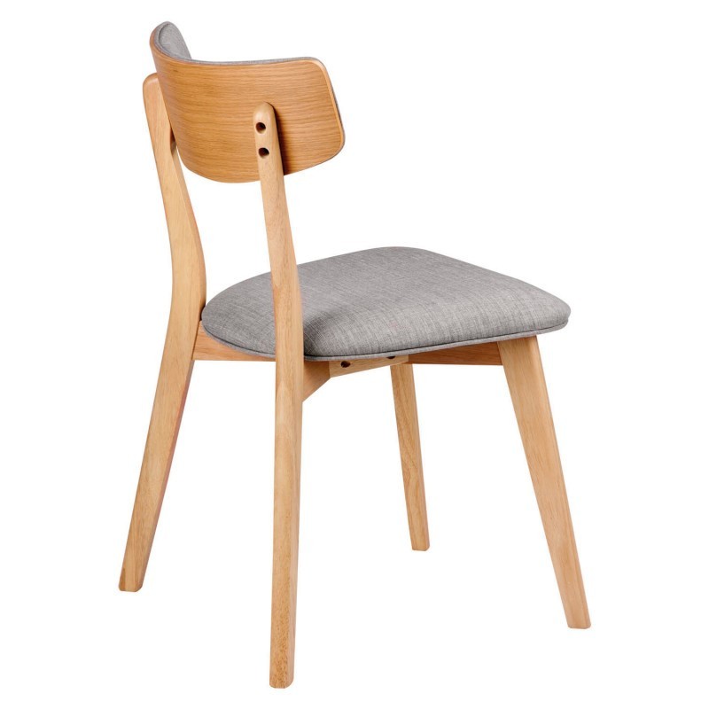 Silla de comedor en madera de roble y tejido gris claro