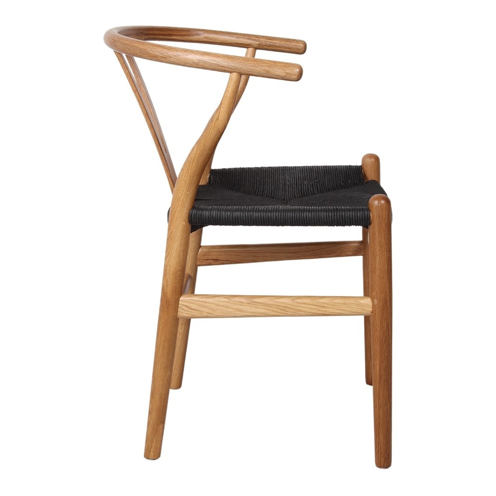 Silla de estilo rústico y aire clásico inspirada en un conocido diseño creado por el diseñador danés Hans J. Wegner en 1949, también conocida como silla "Y" dado la forma de dicha letra en la zona del respaldo.
