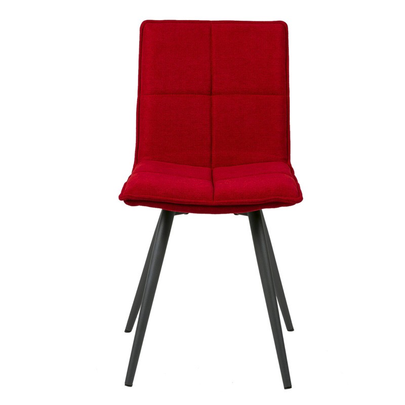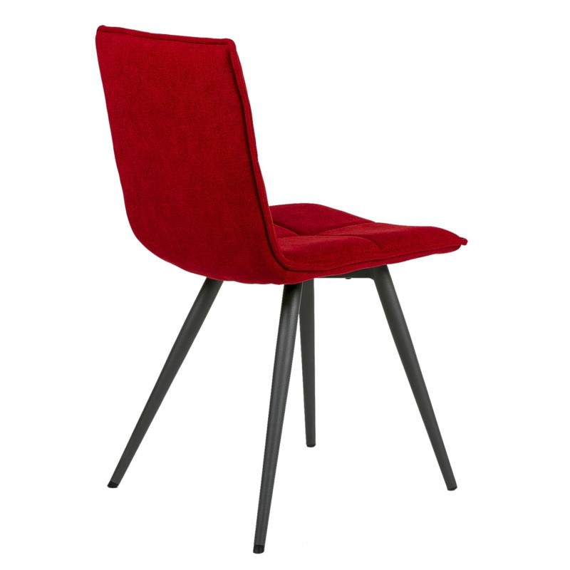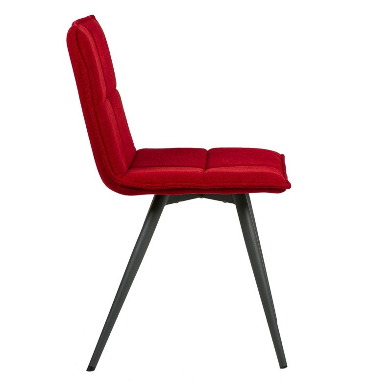 Una silla que puedes destinar a diferentes espacios de tu hogar, como salones o comedores entre otros, y que consta de un asiento y un respaldo presentados en una sola pieza, trabajada mediante tapizado en un llamativo color rojo, y acompañado de cuatro patas de acero acabadas en color negro.