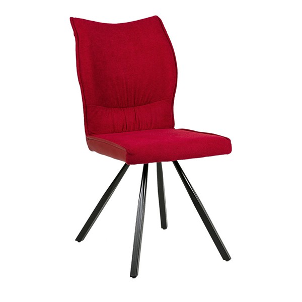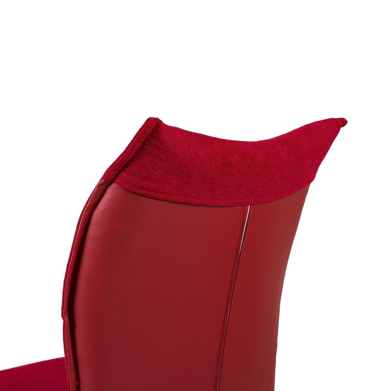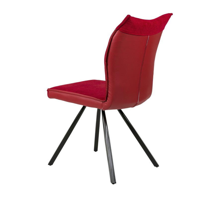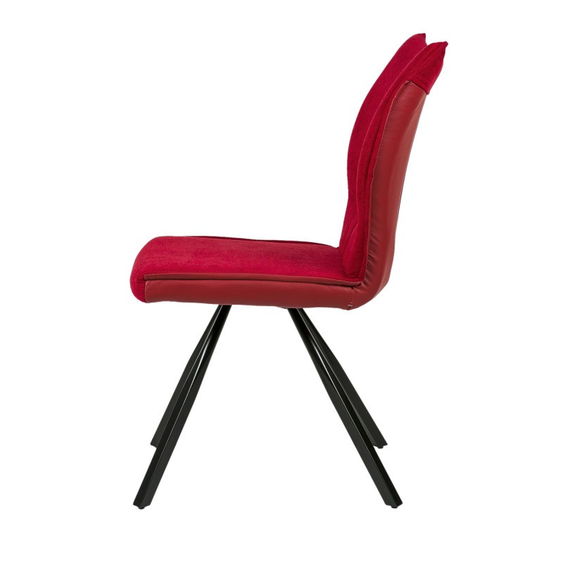 Silla de comedor en tejido y polipiel rojo, metal negro.