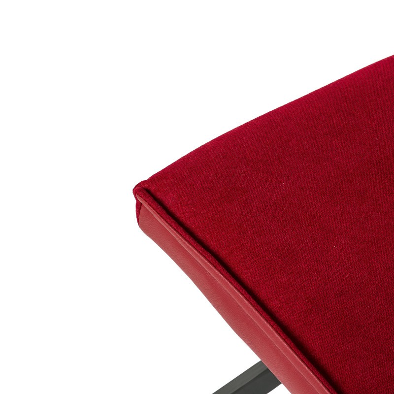 Y es que el asiento y el respaldo se presentan en una sola pieza, estando tapizada en tejido en su cara interior, mientras que la exterior es de polipiel. El color que se ha elegido para su acabado final es el rojo, una tonalidad viva y que aportará colorido a las estancias de tu hogar.