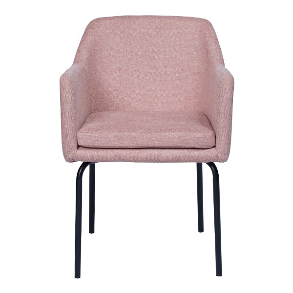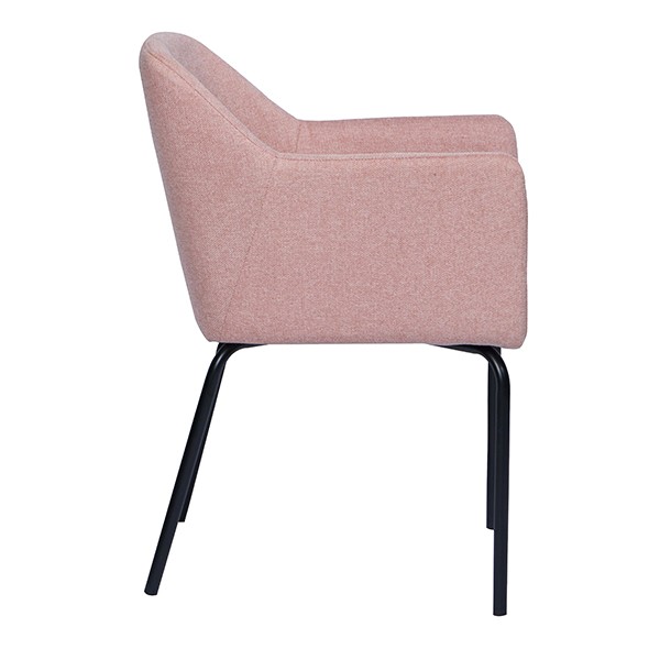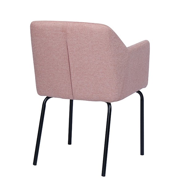 Y es que la silla de comedor FANTASY es un modelo atractivo para todo tipo de salones y comedores. Está formada por un asiento y un respaldo con reposabrazos tapizados en tejido en color rosa, a la que le acompañan cuatro patas metálicas tubulares en color negro.