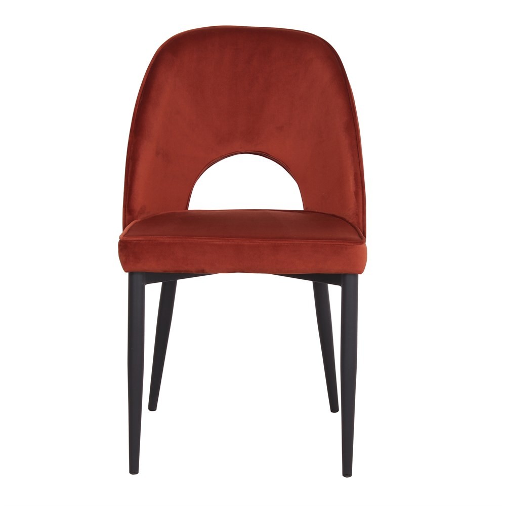 SILLA DE COMEDOR EN TERCIOPELO TERRACOTA Y ACERO NEGRO