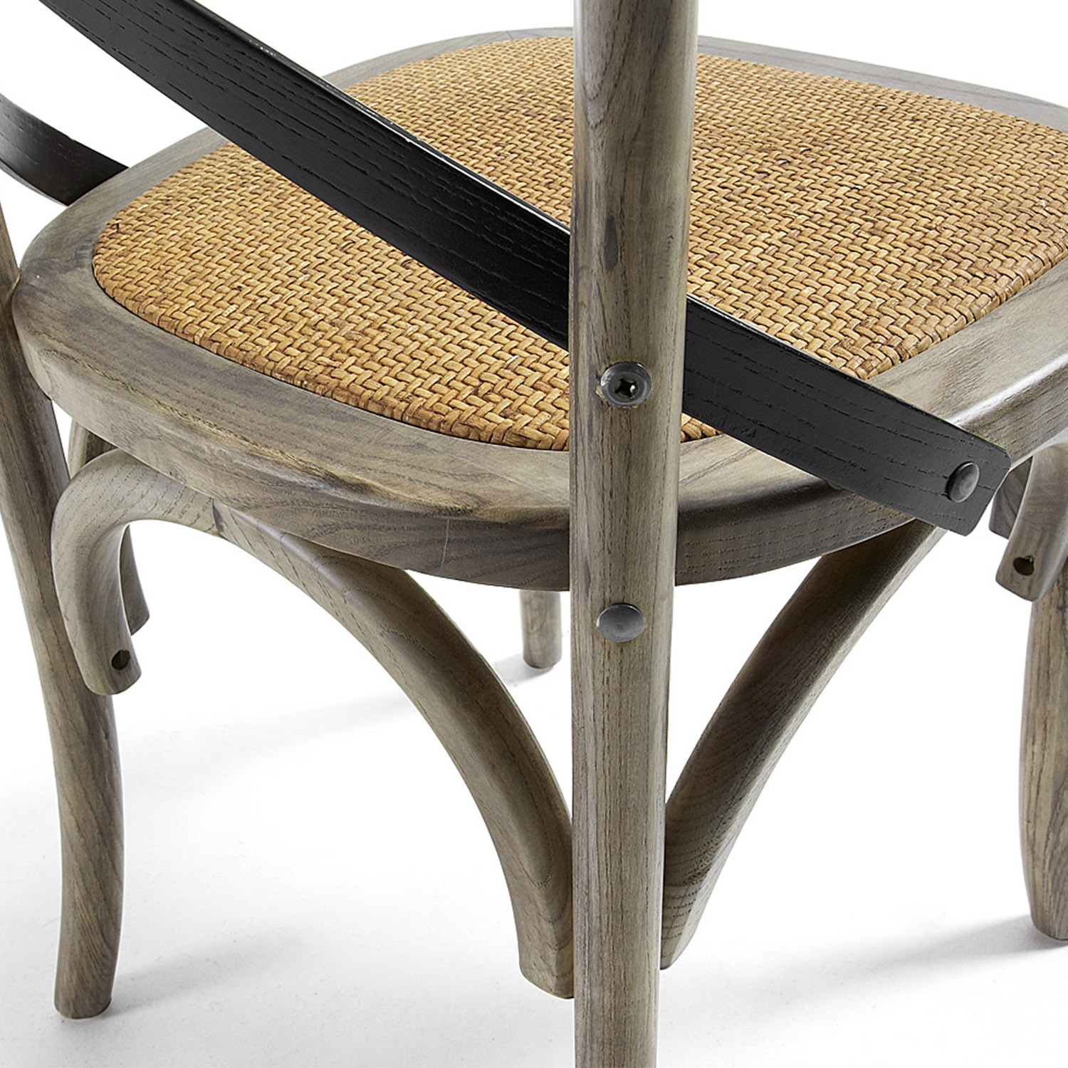 Silla de comedor en madera gris y negro, y ratán
