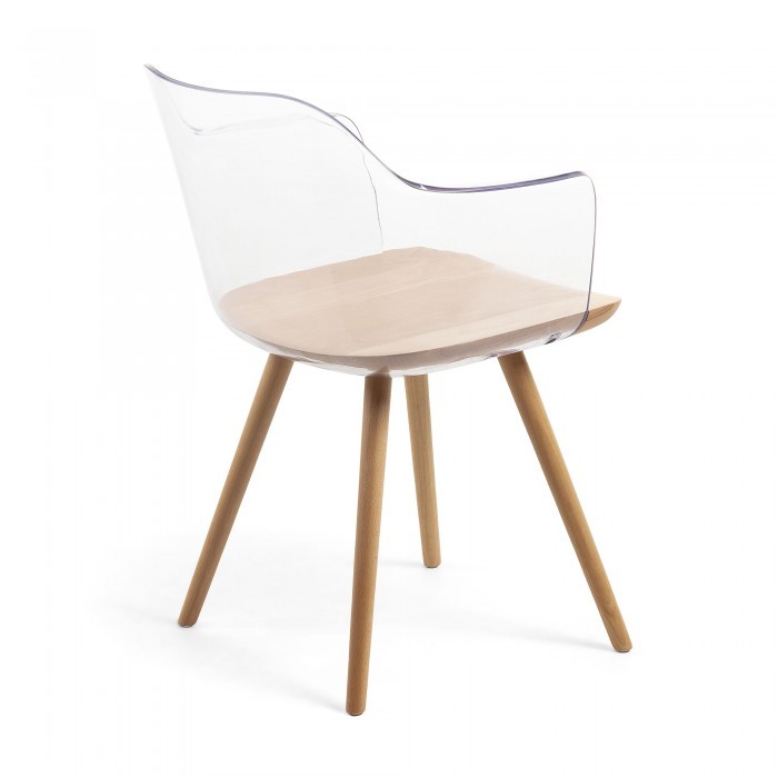 Silla de comedor en plástico Transparente y madera