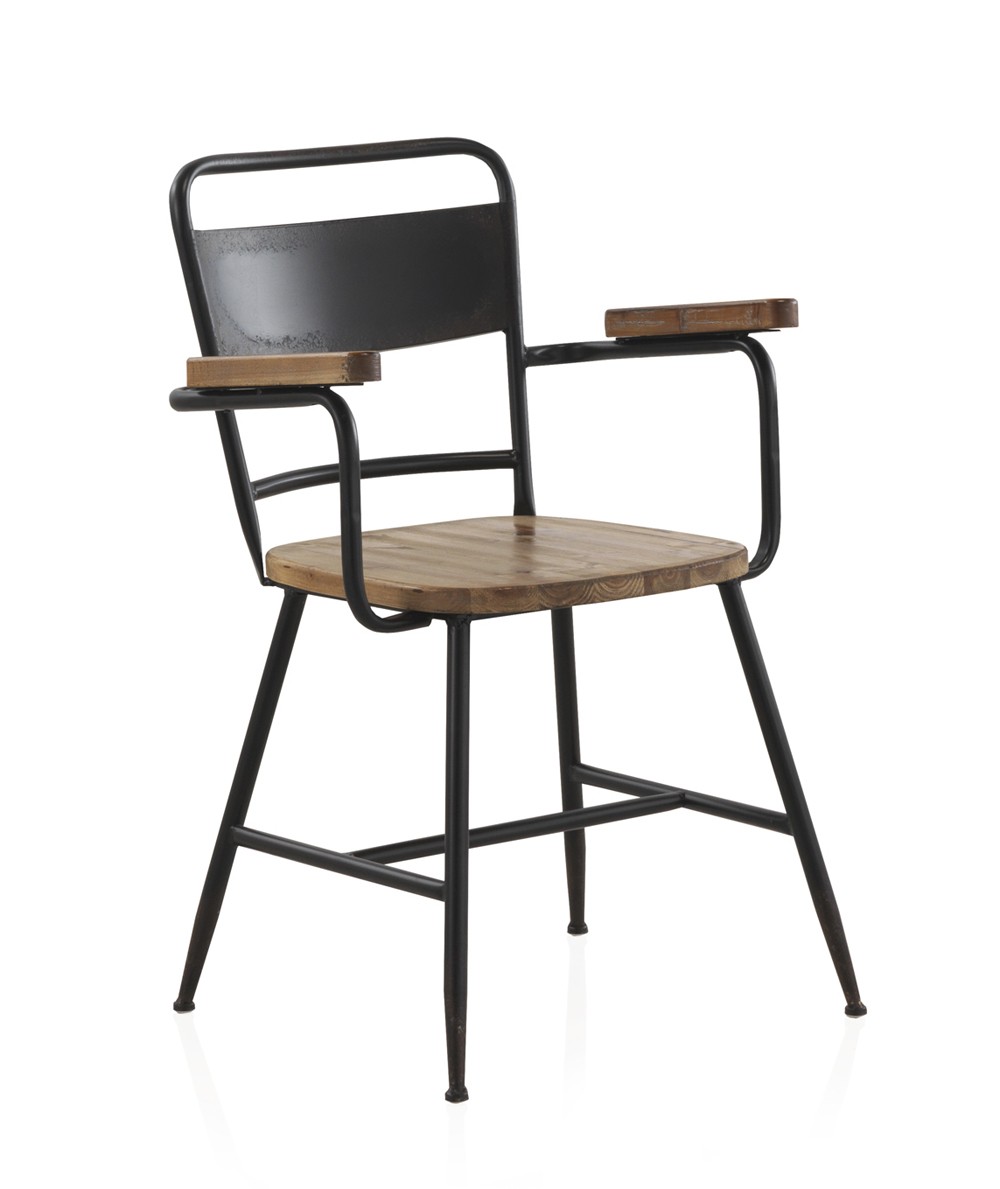 El asiento y el respaldo se encuentran separados y, al igual que los reposabrazos, es la madera de abeto natural la total protagonista del diseño, mientras, que la estructura encargada de soportar todo el peso ha sido diseñada en metal acabado en color negro.