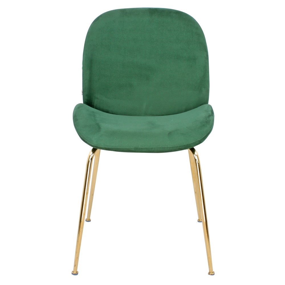 SILLA DE COMEDOR EN TERCIOPELO VERDE, CON ESTAMPADO EN LONETA Y ACERO DORADO