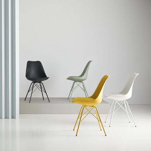 Por qué? porque es fácil su montaje, fácil su mantenimiento y es cómoda, todo ello gracias a sus materiales: polipropileno ergonómico para su asiento de una sola pieza, cojín mullido tapizado en polipiel y patas en metal lacadas.