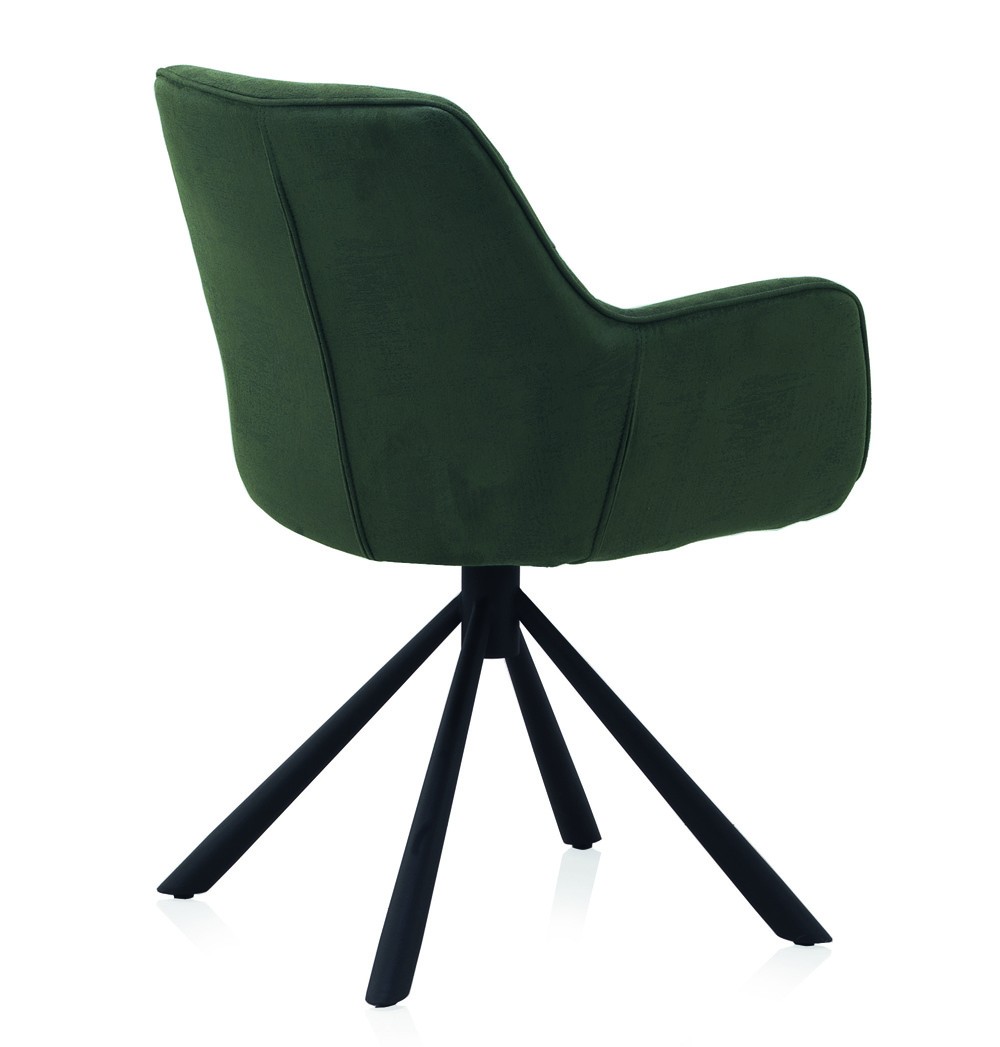Por ello, tenemos para ti la silla de comedor PARMA ARMS, un modelo giratorio, de una elegancia absoluta, y que consta de un asiento y un respaldo unidos en una sola pieza, acompañados de reposabrazos, y creados mediante tejido acabado en color verde.