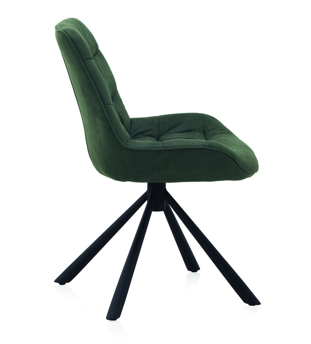 Amueblar un hogar no resulta una tarea fácil. Son muchos los aspectos a valorar y infinitas las posibilidades de elección. Lo que si tenemos claro es que queremos que la silla de comedor PARMA forme parte del salón o el comedor de nuestra casa. Se trata de un modelo giratorio, formado por un asiento y un respaldo presentados en una única pieza, y tapizados en tejido acabado en color verde, con pespuntes horizontales que decoran y le proporcionan un acabado final más trabajado. Por su parte, las patas han sido realizadas en metal finalizado en color negro. Su forma de pirámide ofrece una mayor estabilidad. Finalizamos diciendo que, en nuestro catálogo encontrarás otro modelo de la silla de comedor PARMA más completo. Y es que incorpora brazos para una mayor comodidad.