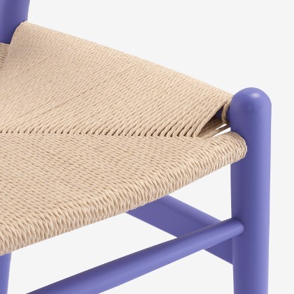 El modelo está realizado en madera de haya lacada en color violeta y asiento reforzado en ratán trenzado ecológico. Respaldo curvado con reposabrazos unido al asiento por una pieza en forma de Y. Elegante y sencilla a la vez para el hogar o negocios de hostelería y restauración.