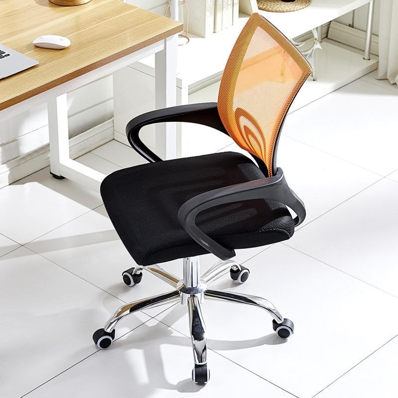 ¿Buscas una silla ligera pero muy resistente y con múltiples funciones? Aquí la tienes, es la silla de escritorio EBORIE, con un gran atractivo por su combinación de colores entre el respaldo en malla naranja y el asiento en tejido negro.