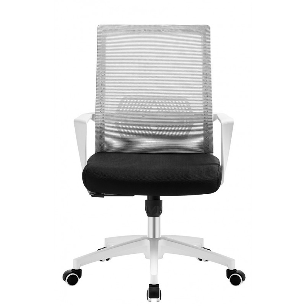 Estructura de color blanco fabricada, en su totalidad, en polipropileno reforzado con fibra de vidrio para una mayor resistencia y durabilidad. Asiento realizado en malla, en la parte del respaldo en color gris y asiento mullido tapizado en tejido acrílico de color negro.