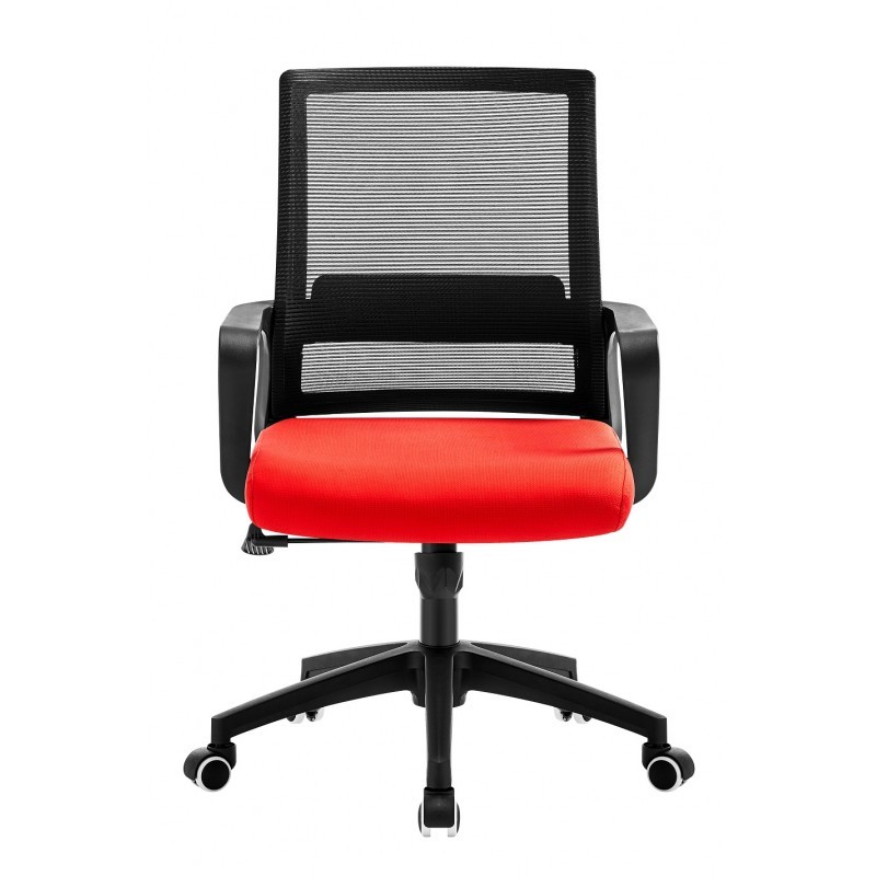 Su asiento está tapizado en tejido acrílico de color rojo, dándole un poco de color a tu zona de trabajo. Gracias al grosor del asiento, resulta una silla de máxima comodidad. Su respaldo en malla de color negro es muy transpirable.