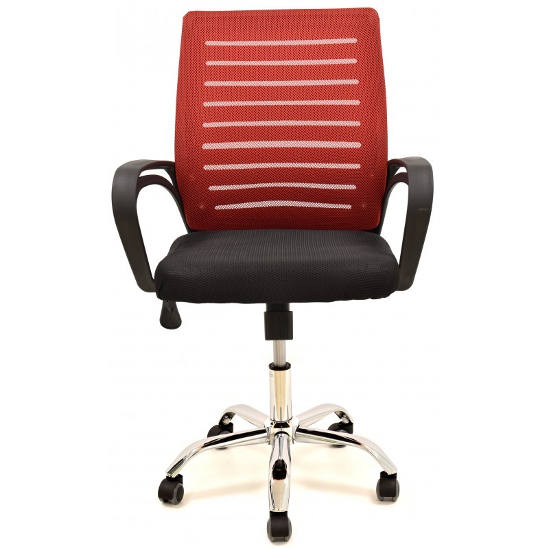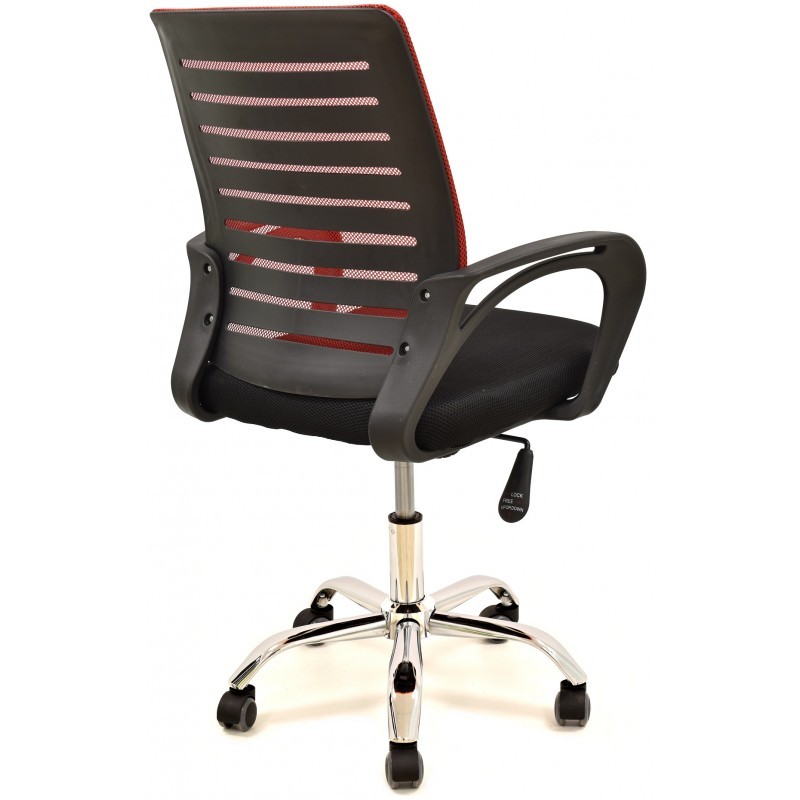 Silla de escritorio en plástico negro, tejido rojo y negro