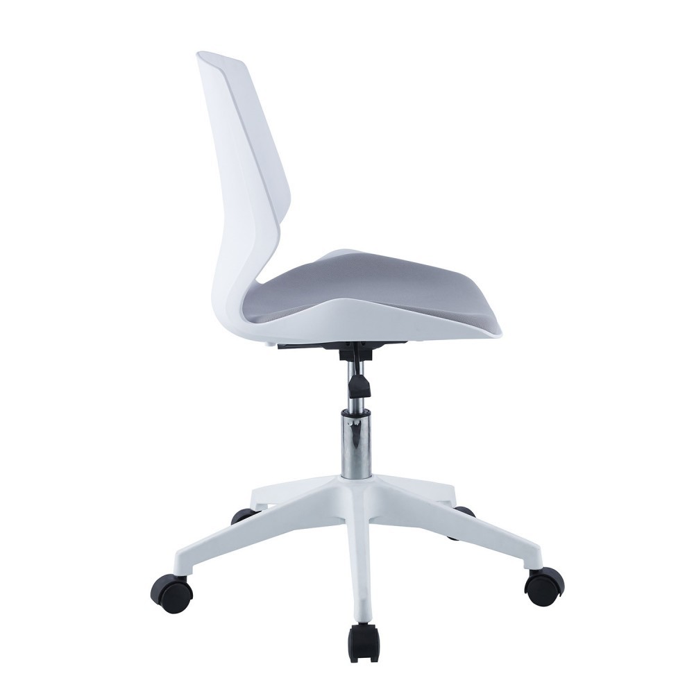 Silla de escritorio con ruedas, plástico blanco y tejido gris