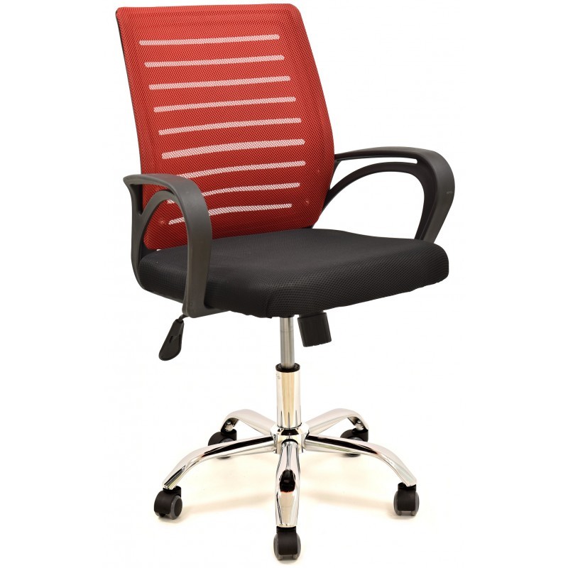 La base es metálica con acabado cromado brillante, que finalizan con sus cinco ruedas. Lo que nos brindan seguridad y libertad de movimientos, a parte de ser giratoria.