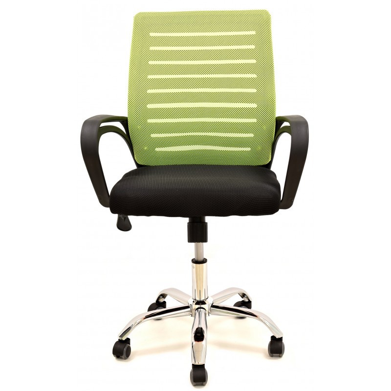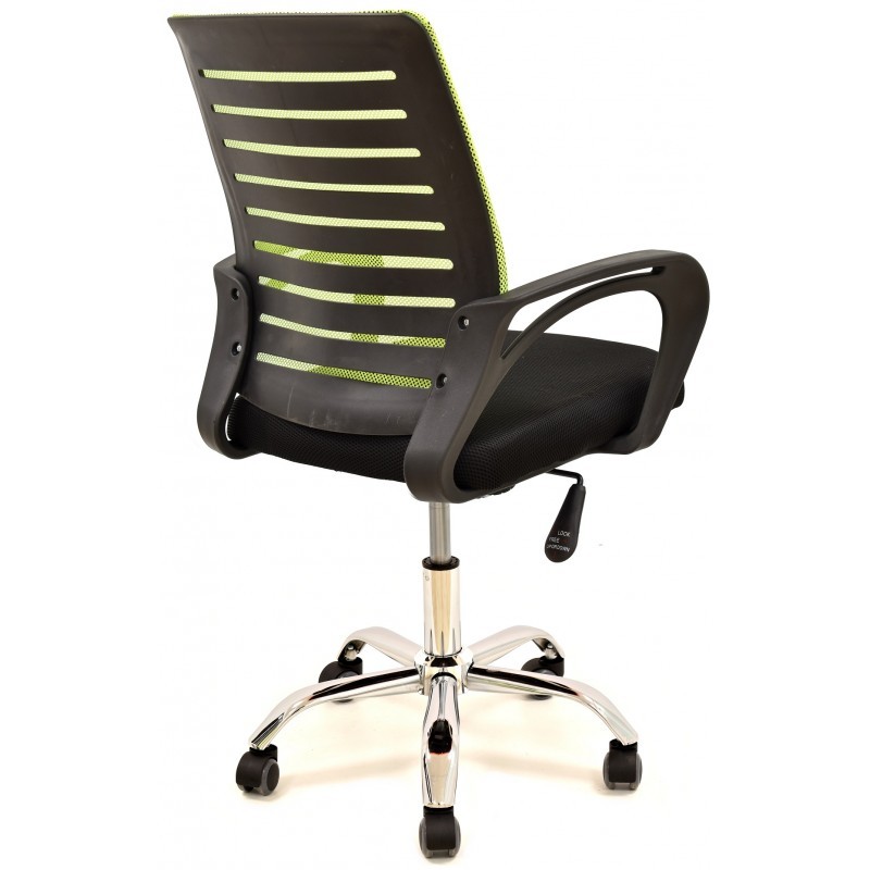 Silla de escritorio en plástico negro, tejido verde y negro