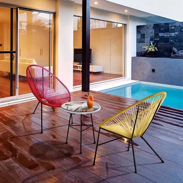 Un modelo inspirado en el diseño anónimo creado originalmente en los años 50 en las playas de México, concretamente en Acapulco representando el folklore y creatividad mexicana. Destaca no solo por sus llamativos colores y precioso diseño sino por su comodidad ya que podrás relajarte en ella para descansar, leer o charlar con tus amigos en tu jardín o terraza tomando el aire fresco.