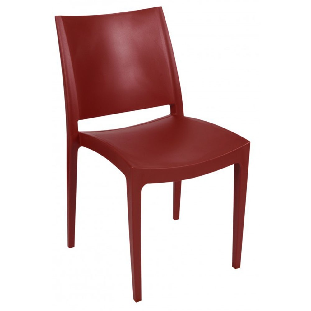Fabricada en una sola pieza en polipropileno (plástico) inyectado con fibra de vidrio en un llamativo color rojo burdeos. Estos materiales le aportan durabilidad, firmeza y resistencia tanto al paso del tiempo como a los rayos UV si la intención es colocarla en el exterior.