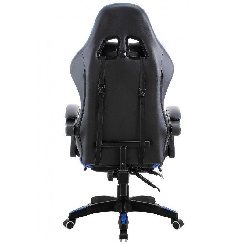 Color: Azul y negro. Materiales: Similpiel y plástico. Medidas: Medida alto: 112-124 cm. Medida ancho: 67,5 cm. Medida profundo: 71 cm.